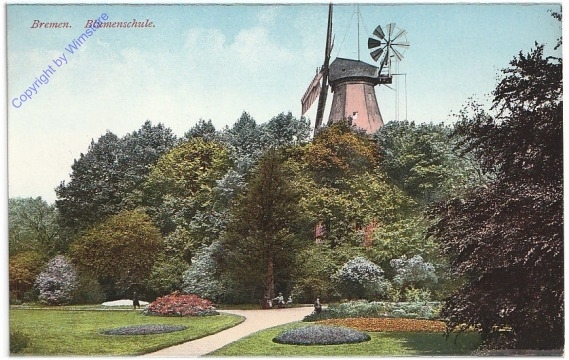 Bremen, Gruss aus, Wallpartie mit Windmühle
