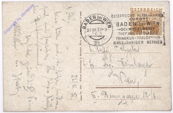 Baden, Helenental mit Pension Silvana und Hotel Sacher