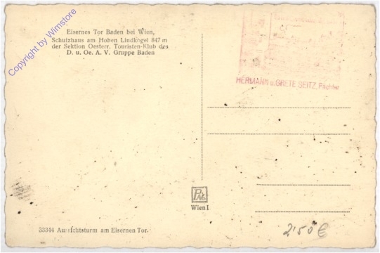 Baden, Eisernes Tor, Schutzhaus mit 14 m hohem Aussichtsturm am Hohen Lindkogel