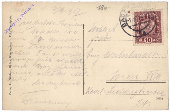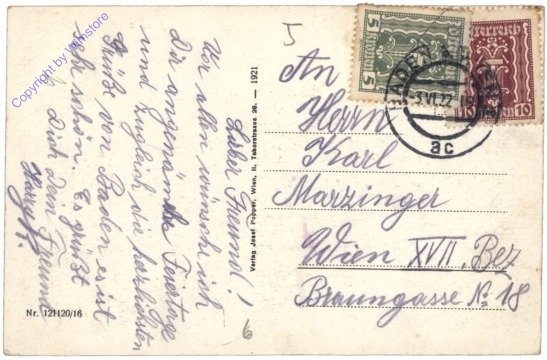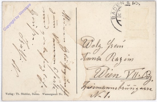 Baden, Karlsgasse mit Aquädukt, Blick auf Ruine Rauheneck