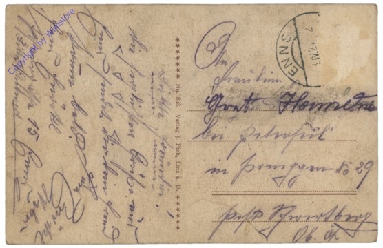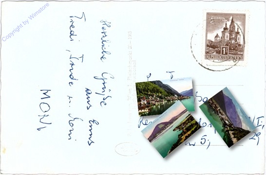 Enns, Blick auf Stadtturm, Schloß 5 Brücke