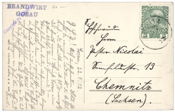 Gosau, Partie in Gosau mit Schloß und Donnerkogel