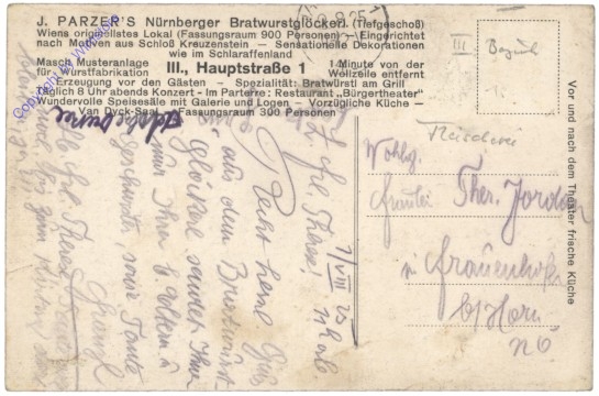 Wien 3, J. Parzer’s Restaurant “Bürgertheater”