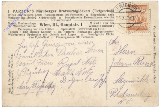 Wien 3, J. Parzer’s Nürnberger Bratwurstglöckerl
