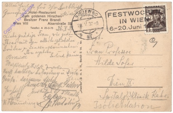Wien 8, Hotel-Restaurant „zum goldenen Hirschen“