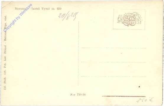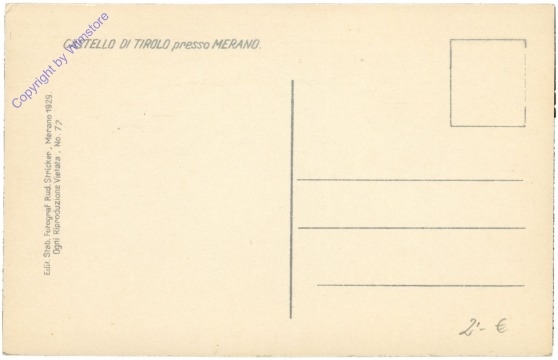 Merano (Meran), K.K. Stammschloss Tirol mit Erdpyramide gegen die Ortlergruppe