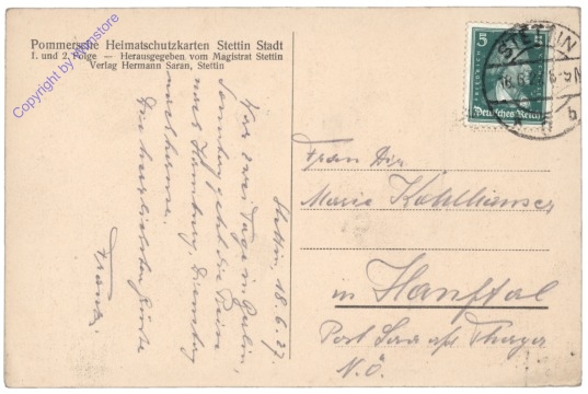 Stettin, Durchblick a.d. Regierungsgebäude m. Kaiser Friedr.-Denkm.