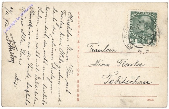 Brno (Brünn), Blick v. Franzensberg gegen die Elisabethstr. m.d. Protest. Kirche