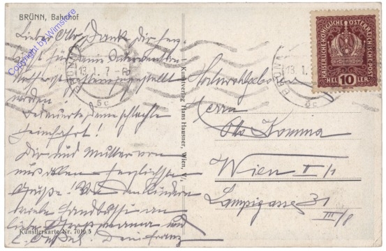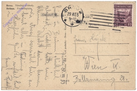 Brno (Brünn), Bahnhofplatz und Hotel Padowetz