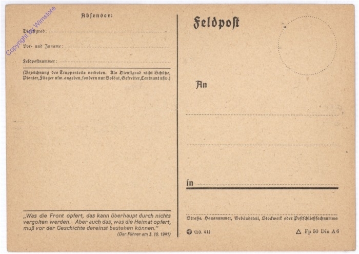 7,00 €Feldpostkarte. Großformat.