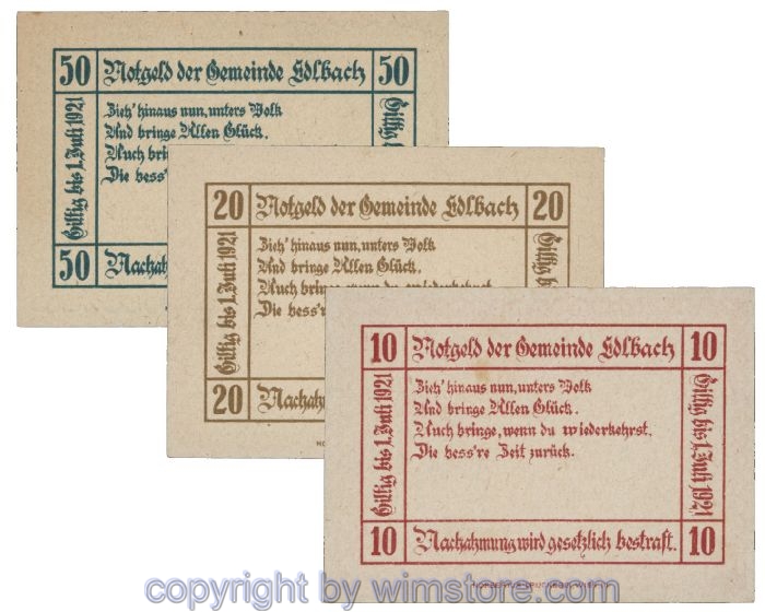 Edlbach, G0150a, Serie 10, 20, 50 Heller; 1
