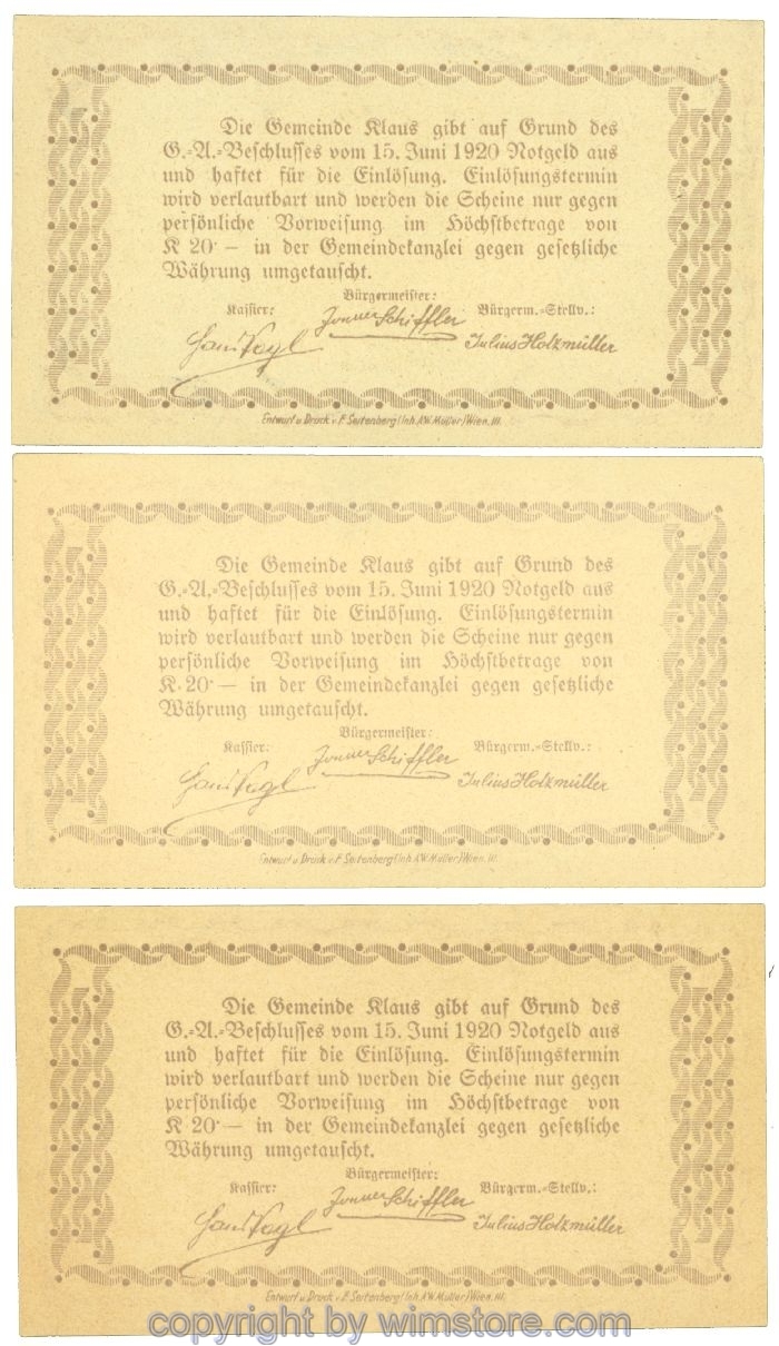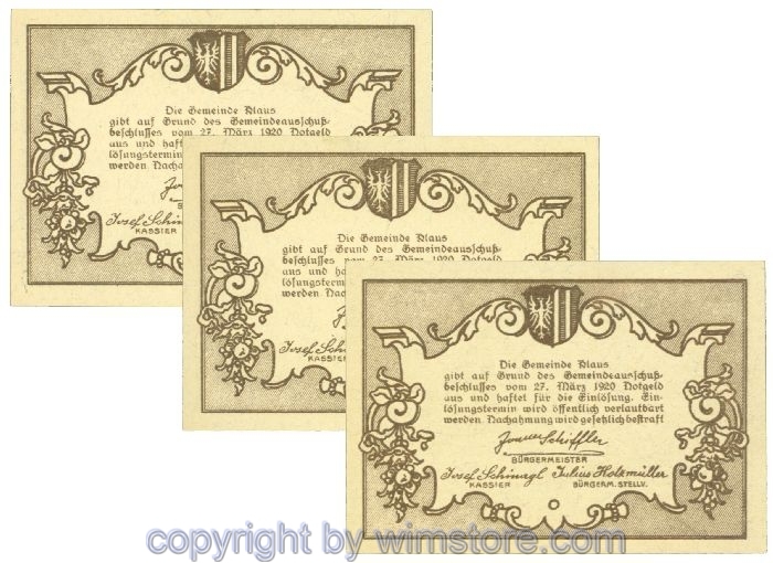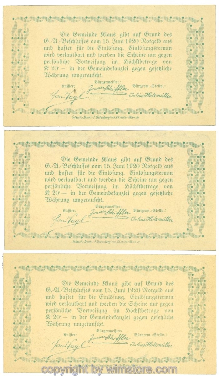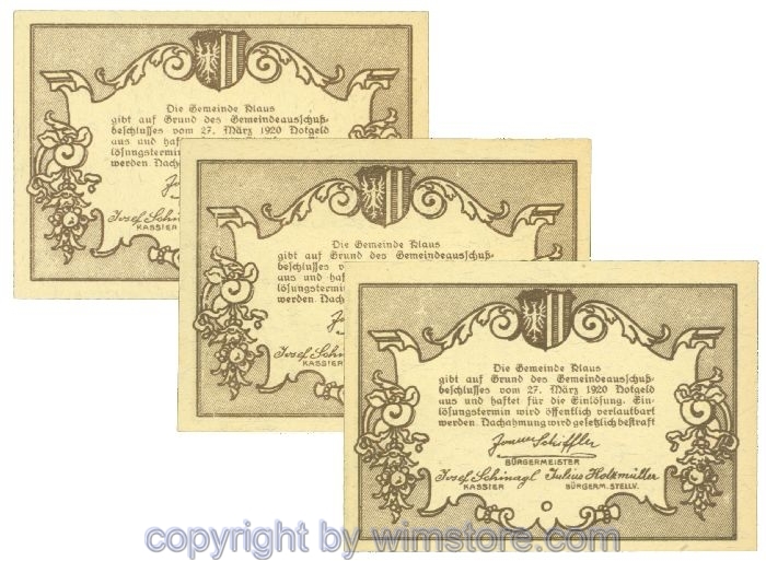 Klaus, J00454Ib, Serie 10, 20, 50 Heller; 1