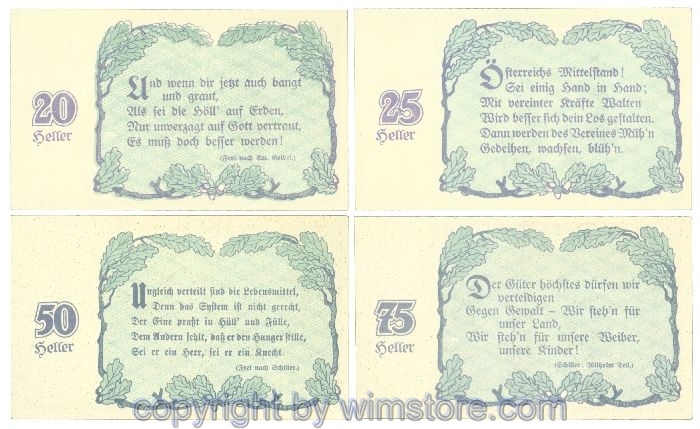 Linz, Prv. I. Mittelstand-Wirtschafts-Genossenschaft, J00550b, Serie 20, 25, 50, 75 Heller; 1-2