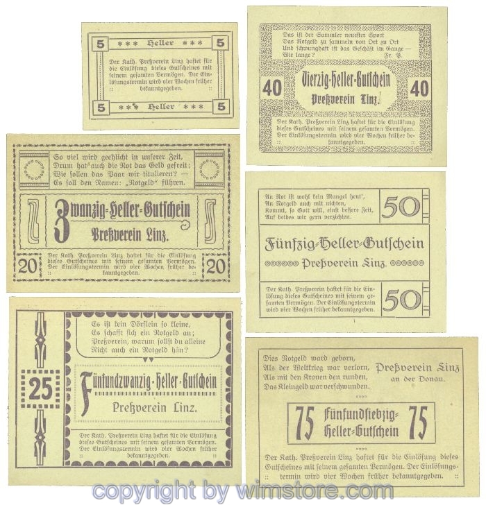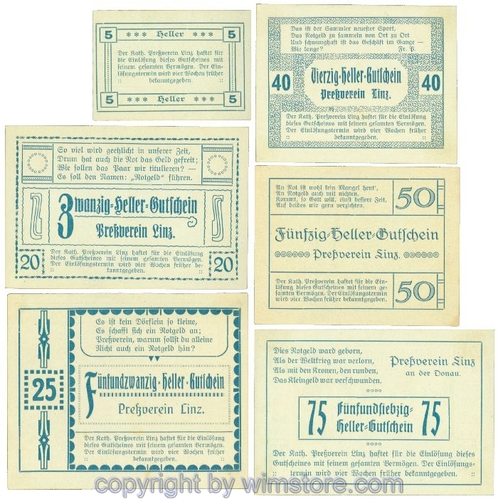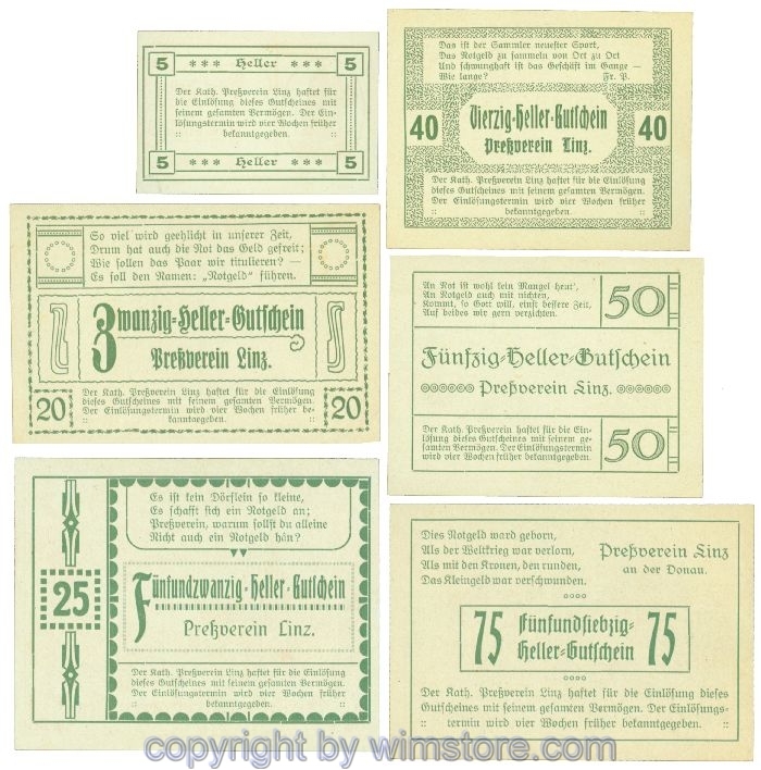 Linz, Prv. Pressverein Linz, J00553Ic, Serie 5, 20, 25, 40, 50, 75 Heller; 1-