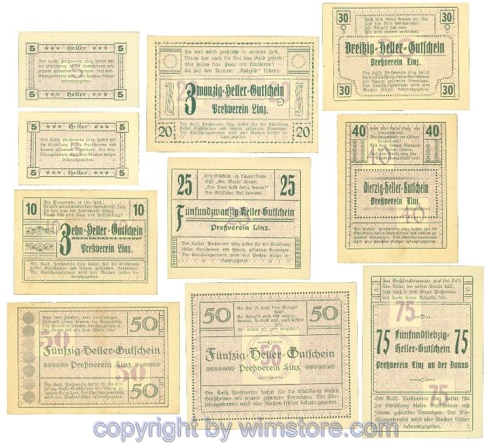 Linz, Prv. Pressverein Linz, J00553Ig, Serie 5, 20, 25, 40, 50, 75 Heller; 1