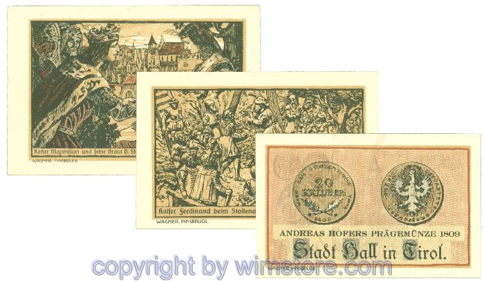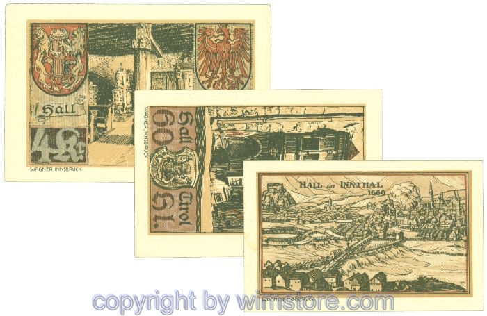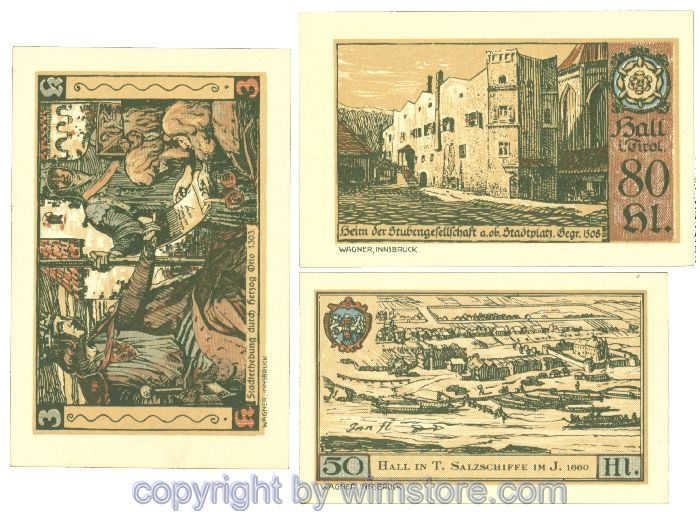 Hall in Tirol, J00342IIa, 50, 80 Heller, 3 Kronen; 1