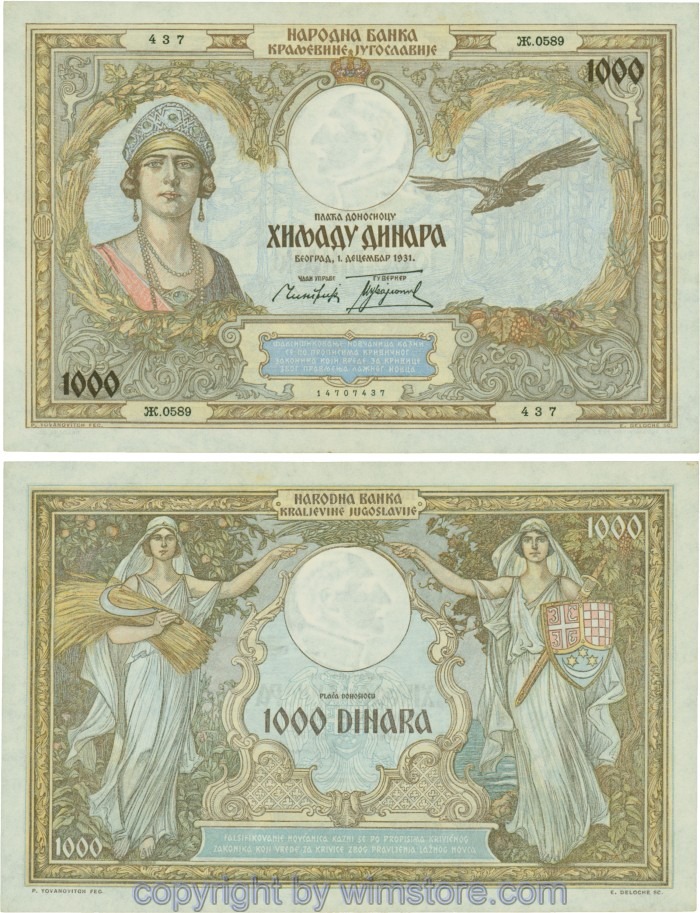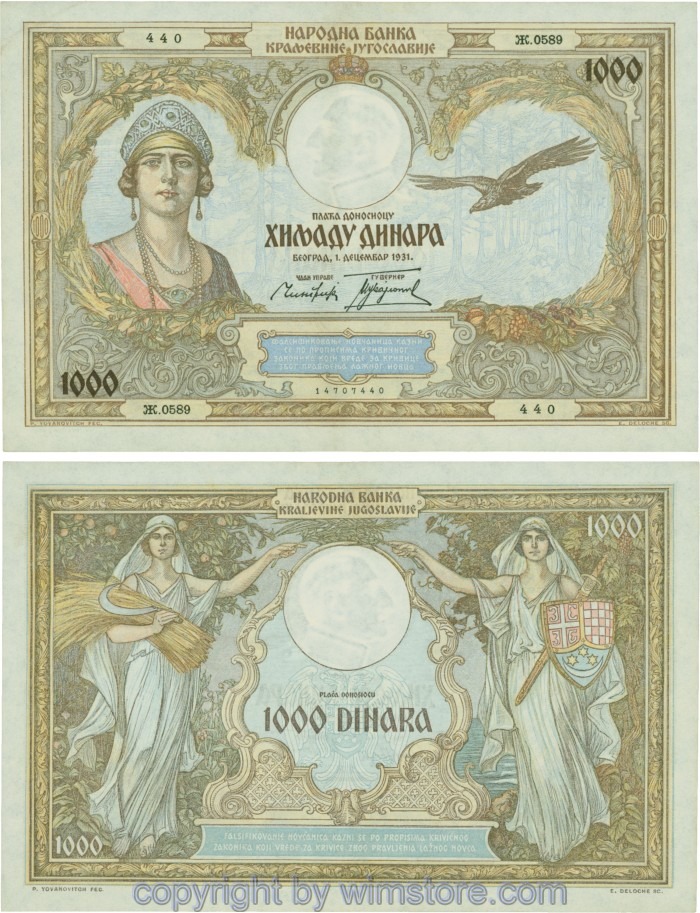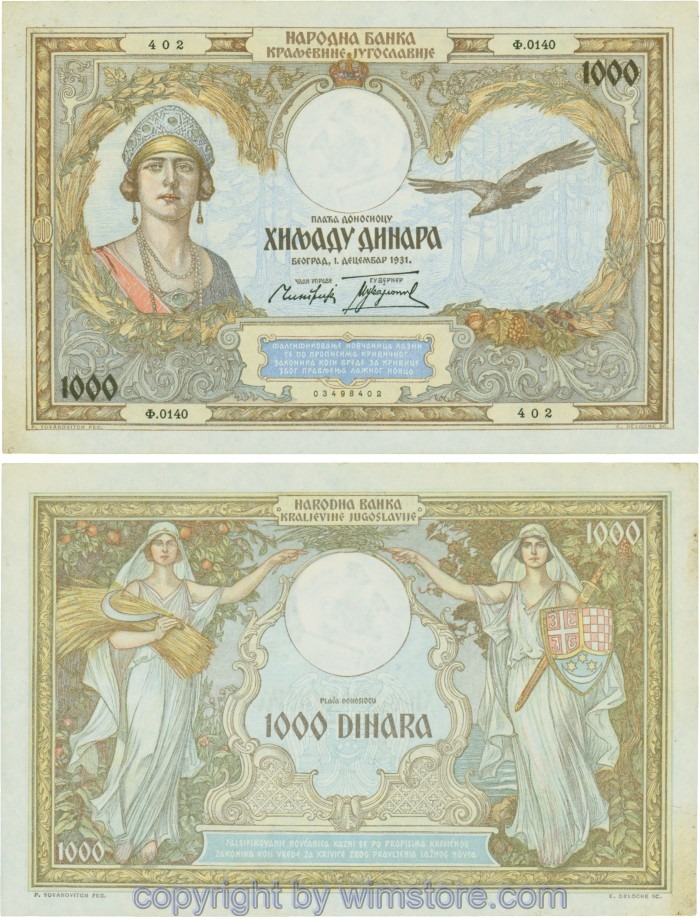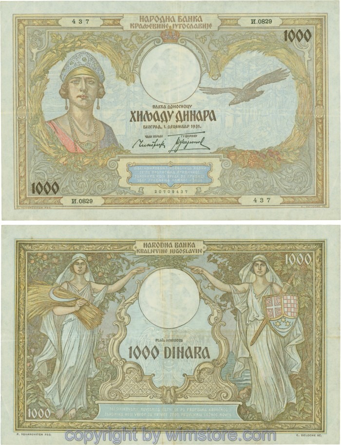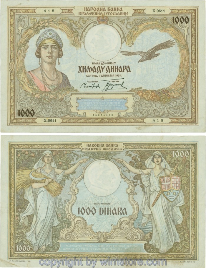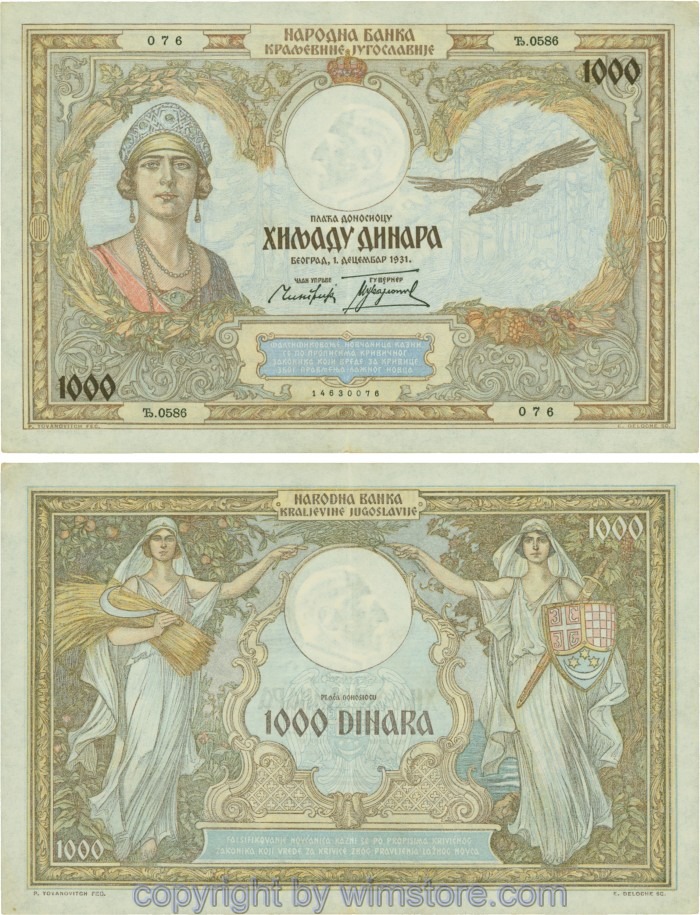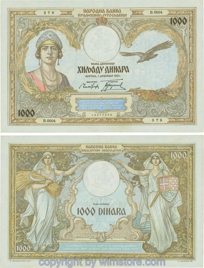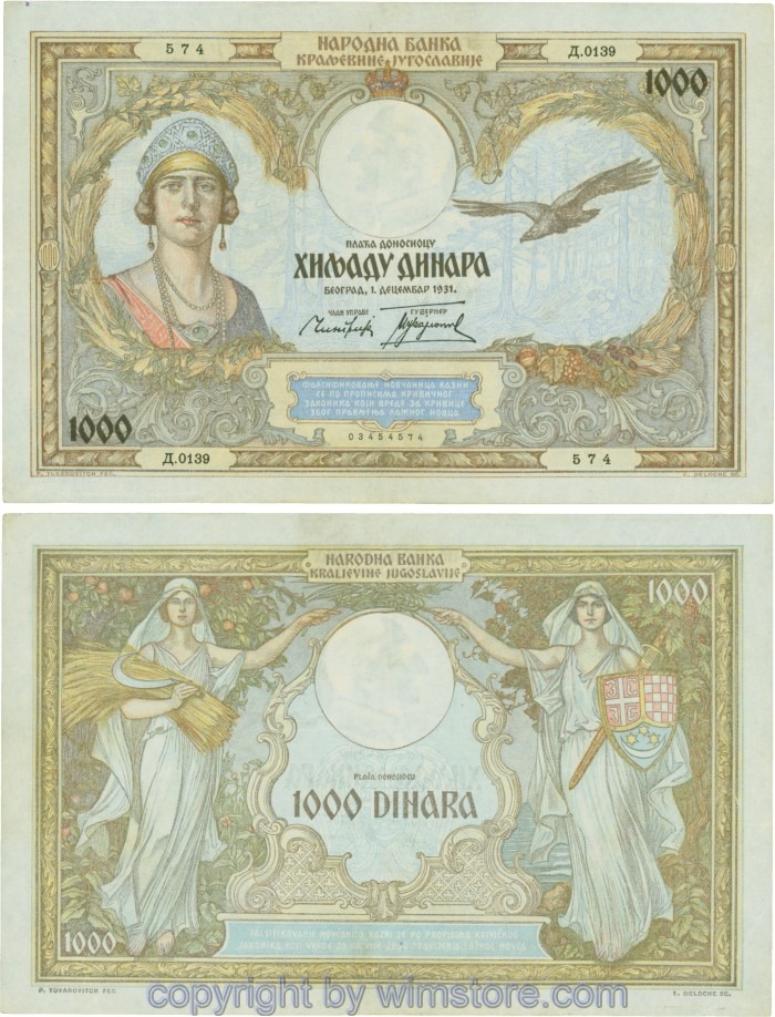 Kaufen Sie eines von Jugoslawien, P029, 1000 Dinara 1.12.1931, Serie Ж (Ž); 4 für 5,90 €