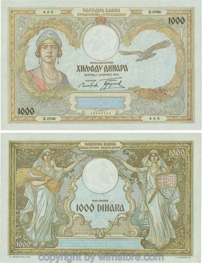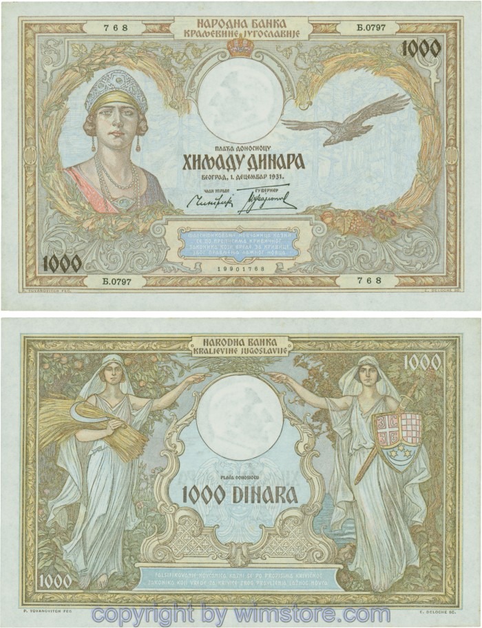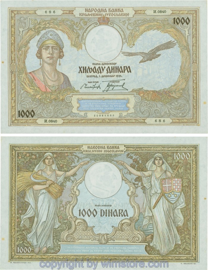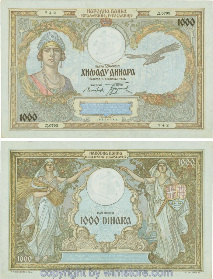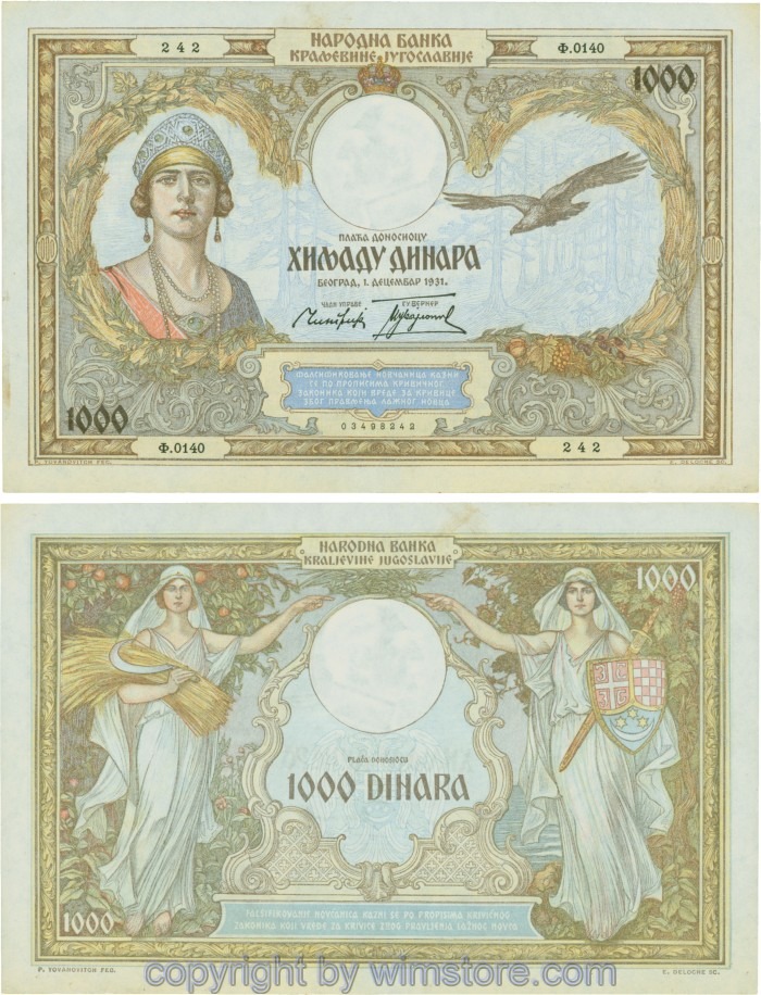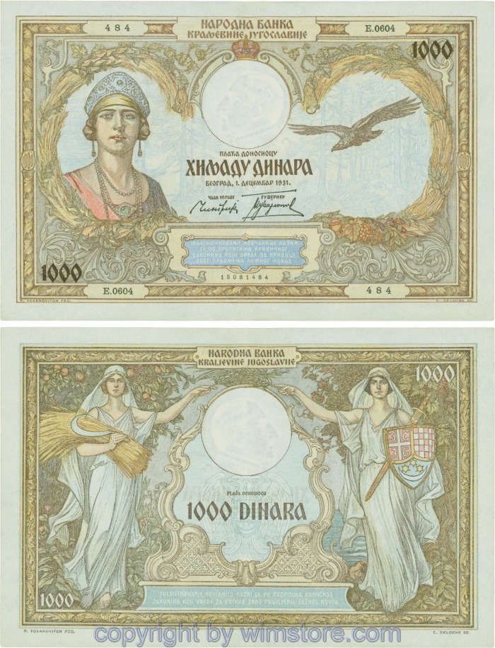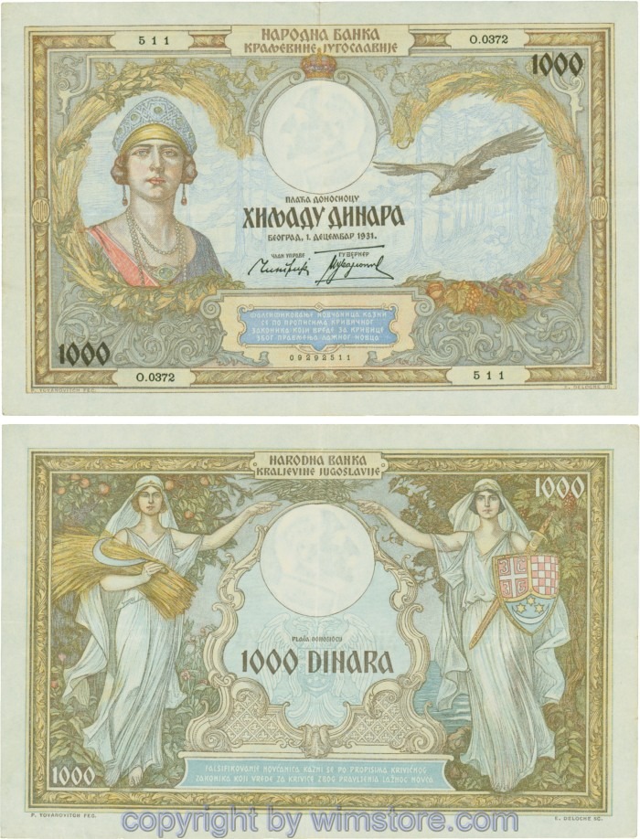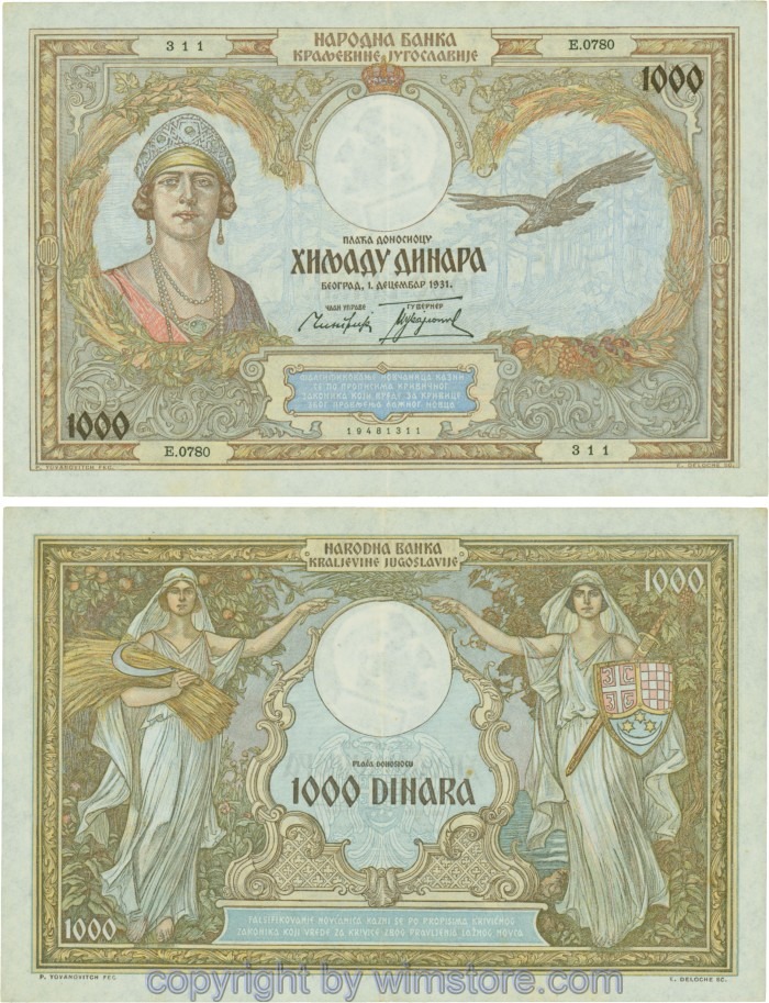 Kaufen Sie eines von Jugoslawien, P029, 1000 Dinara 1.12.1931, Serie Ж (Ž); 4 für 5,90 €