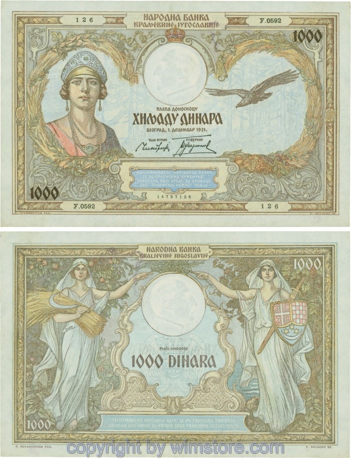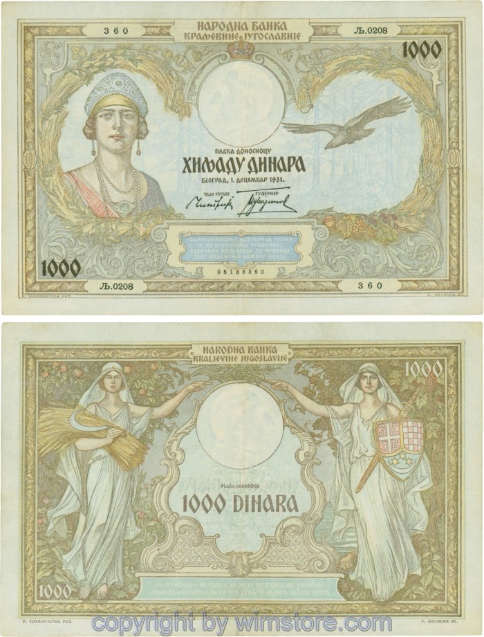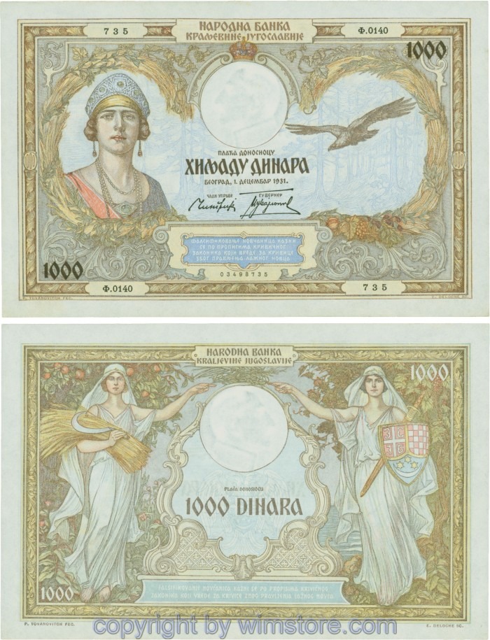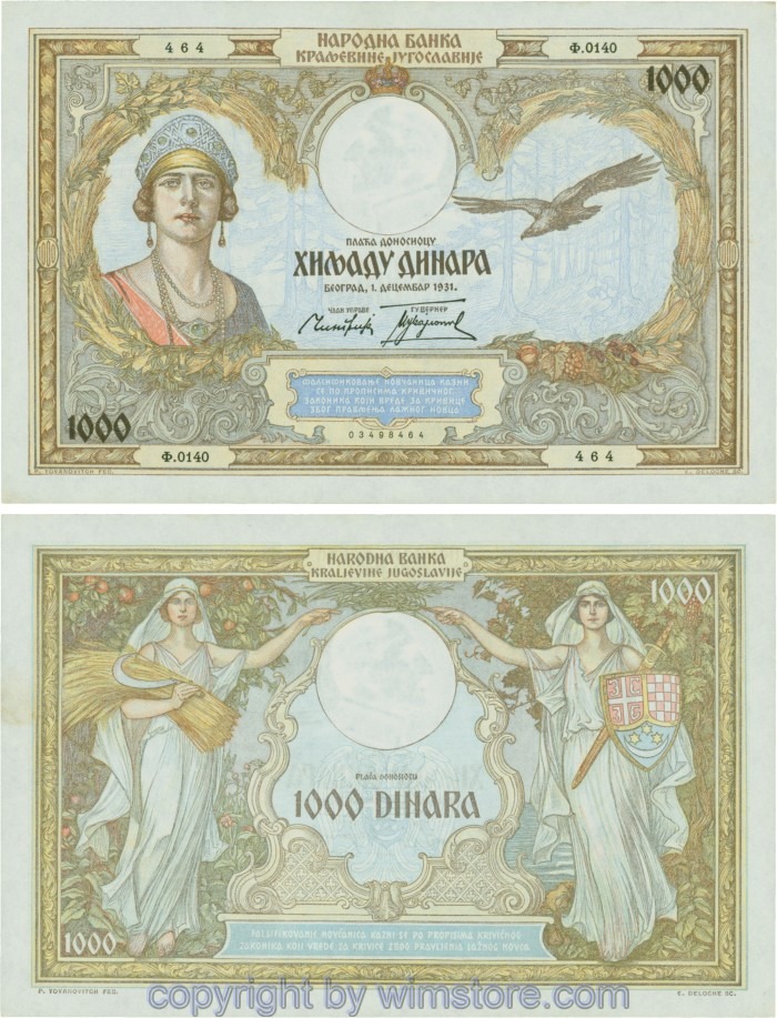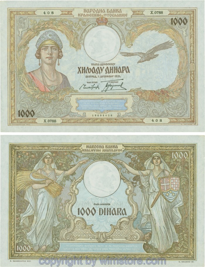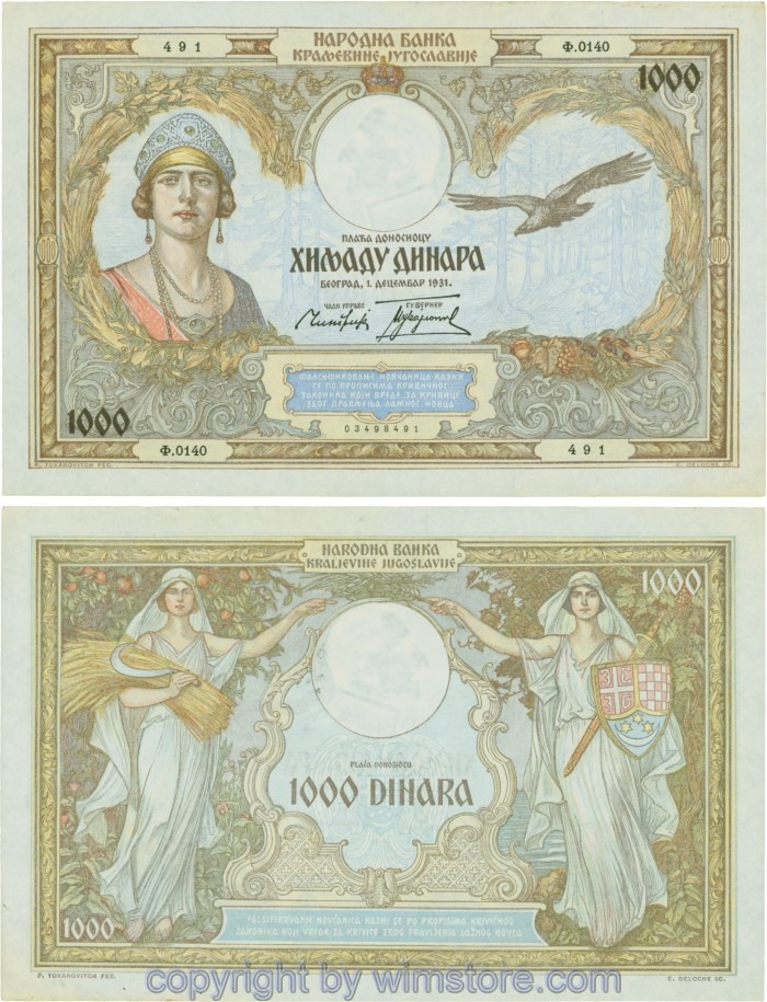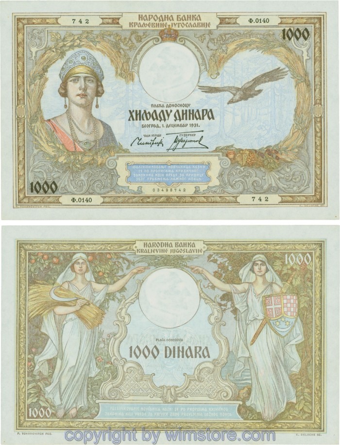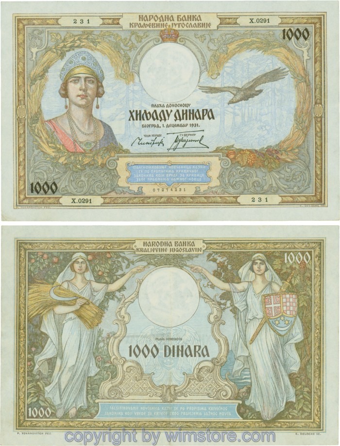 Kaufen Sie eines von Jugoslawien, P029, 1000 Dinara 1.12.1931, Serie Ж (Ž); 4 für 5,90 €