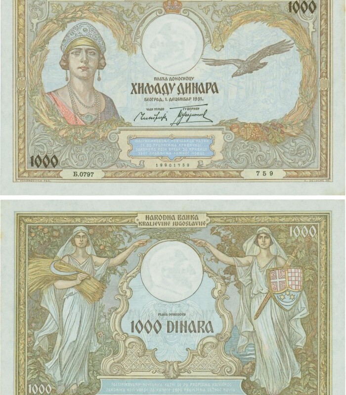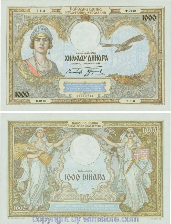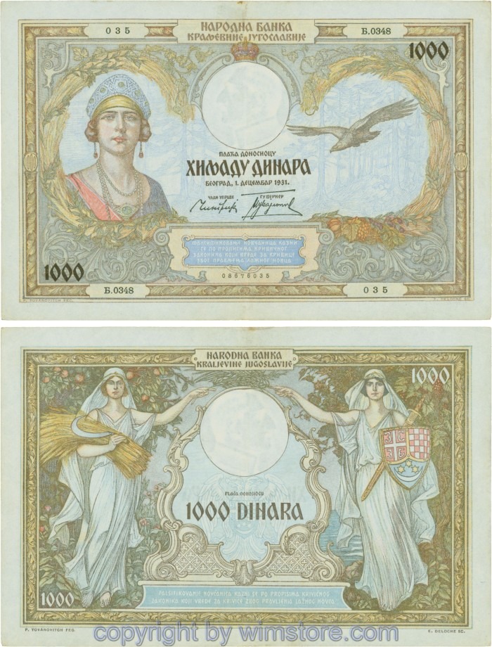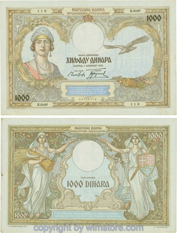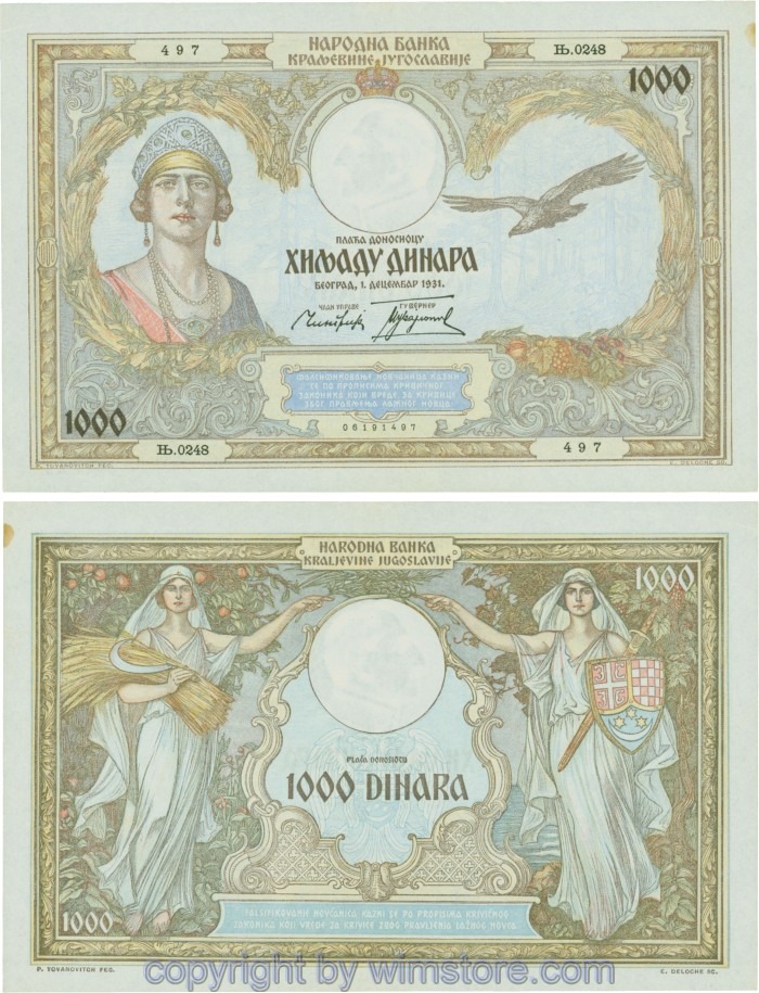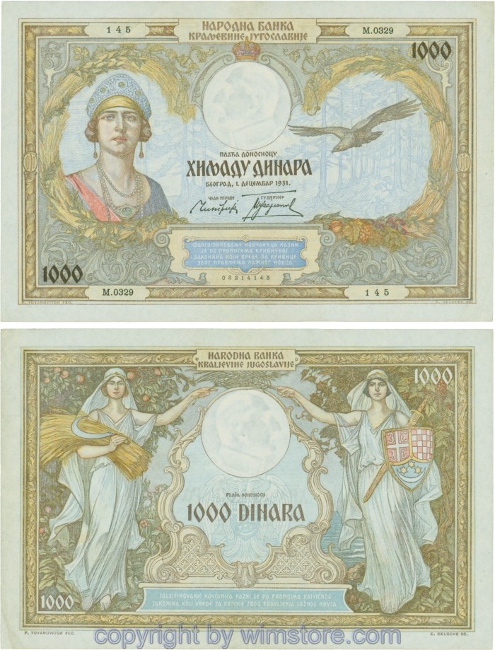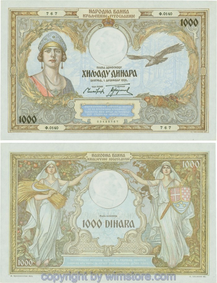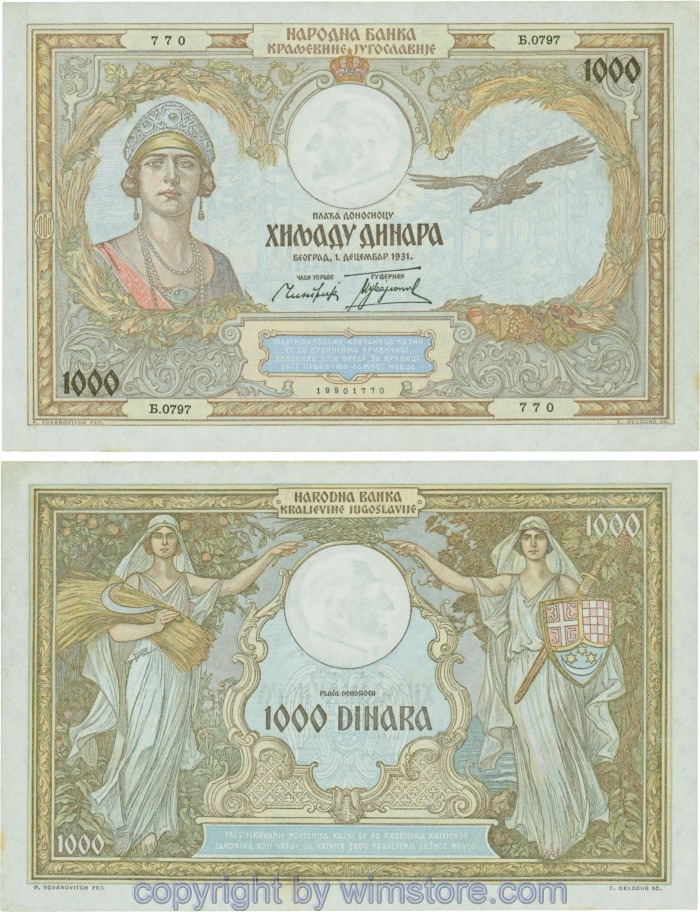 Kaufen Sie eines von Jugoslawien, P029, 1000 Dinara 1.12.1931, Serie Ж (Ž); 4 für 5,90 €