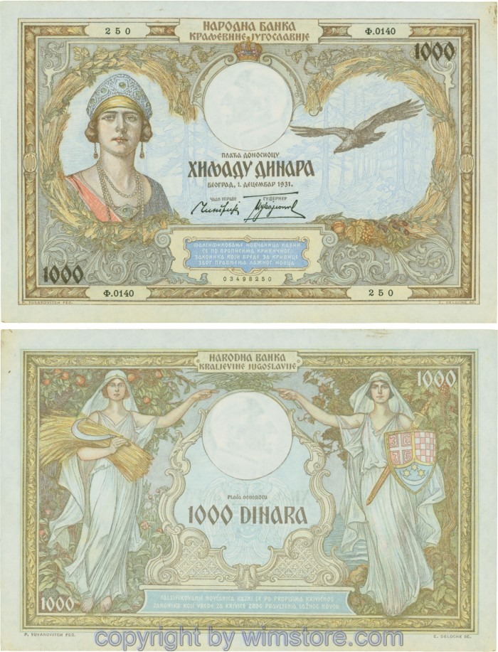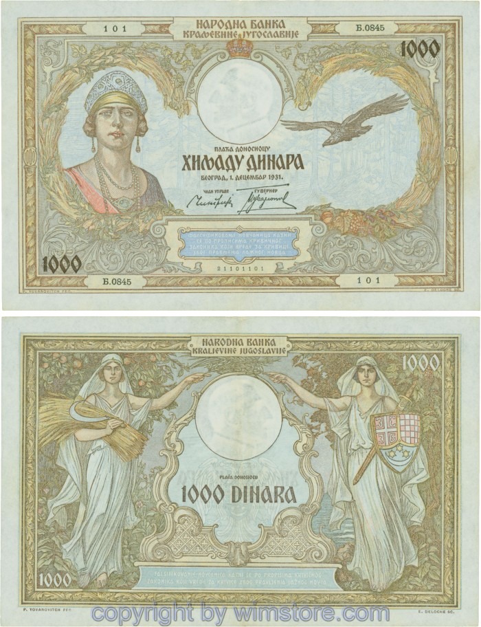 Kaufen Sie eines von Jugoslawien, P029, 1000 Dinara 1.12.1931, Serie Њ (Nj); 3 für 9,90 €