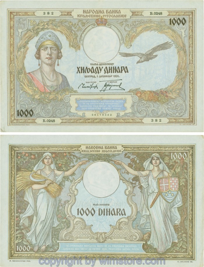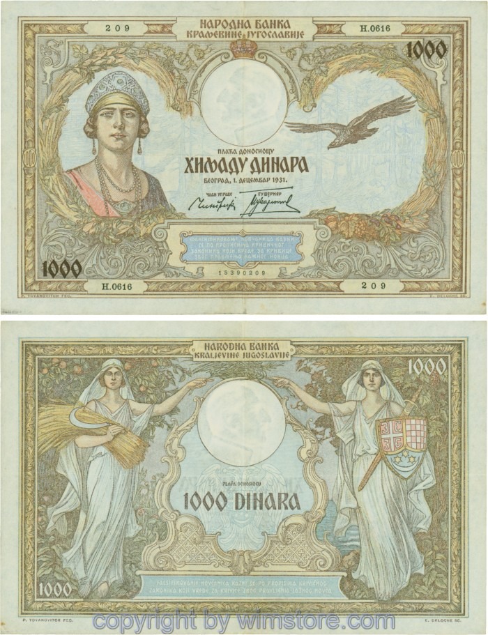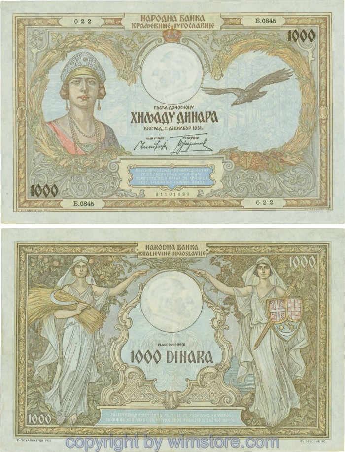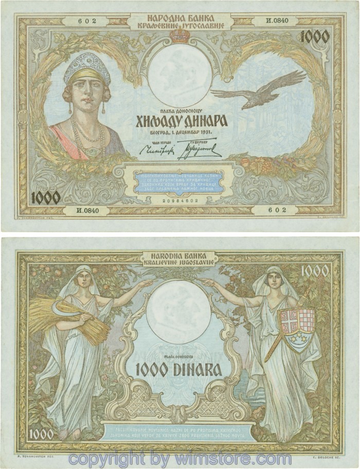 Jugoslawien, P029, 1000 Dinara 1.12.1931, Serie Њ (Nj); 3 ggf. Auswahl möglich! Originalfoto/s.