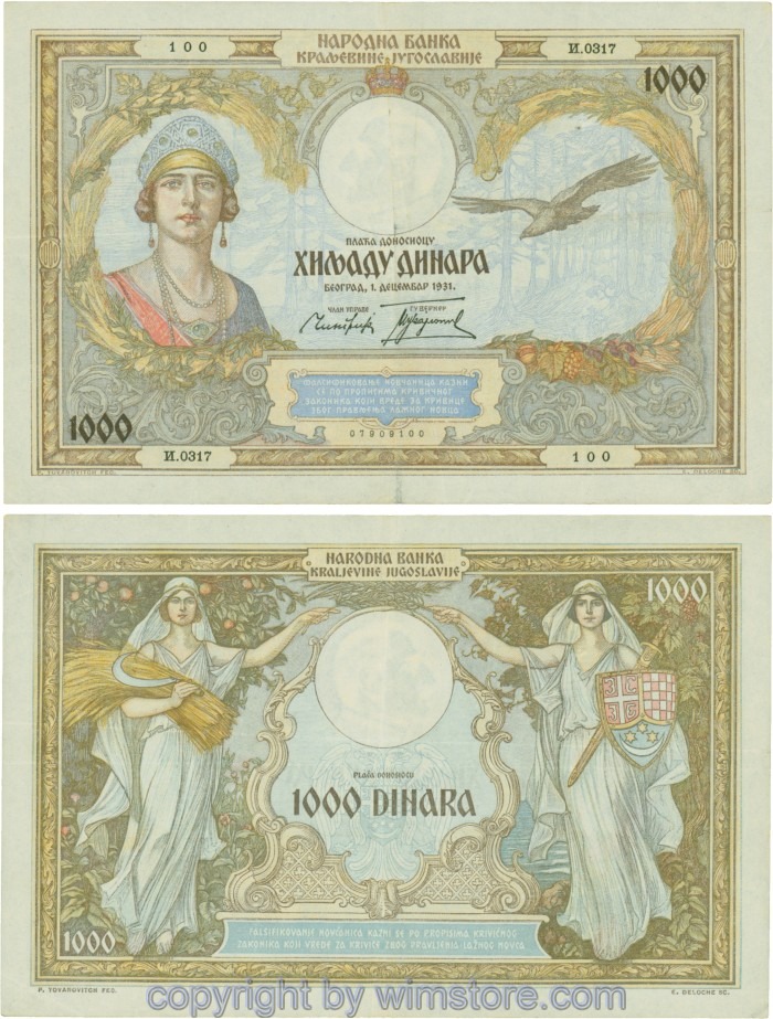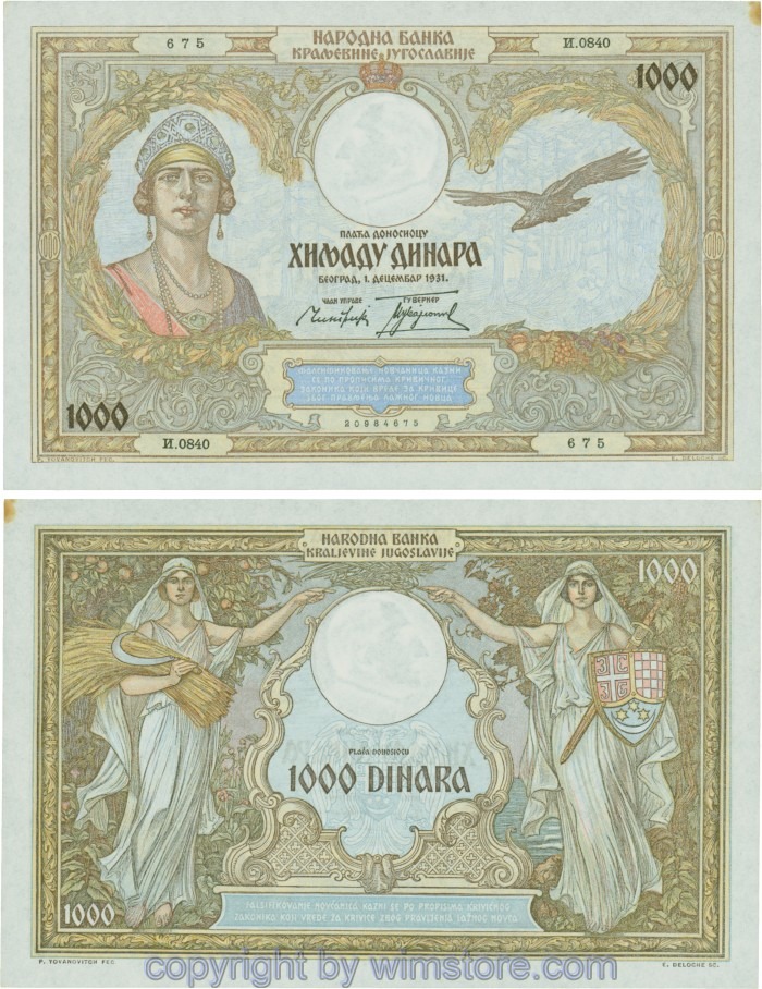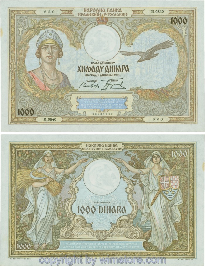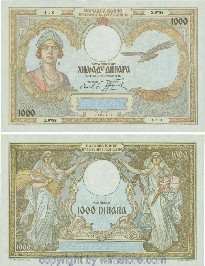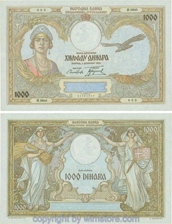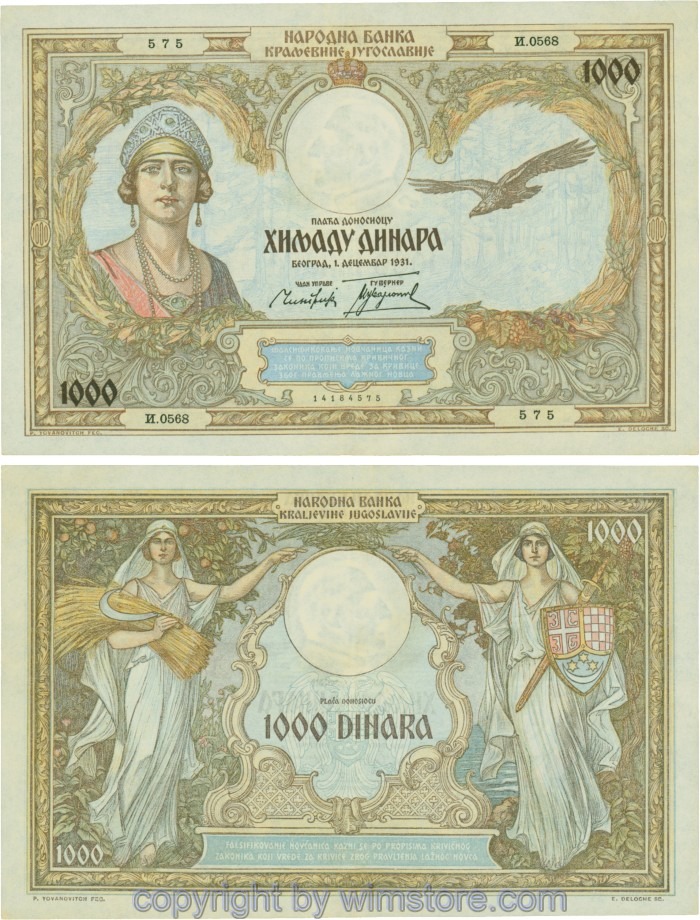 Jugoslawien, P029, 1000 Dinara 1.12.1931, Serie И (I); 2 ggf. Auswahl möglich! Originalfoto/s.