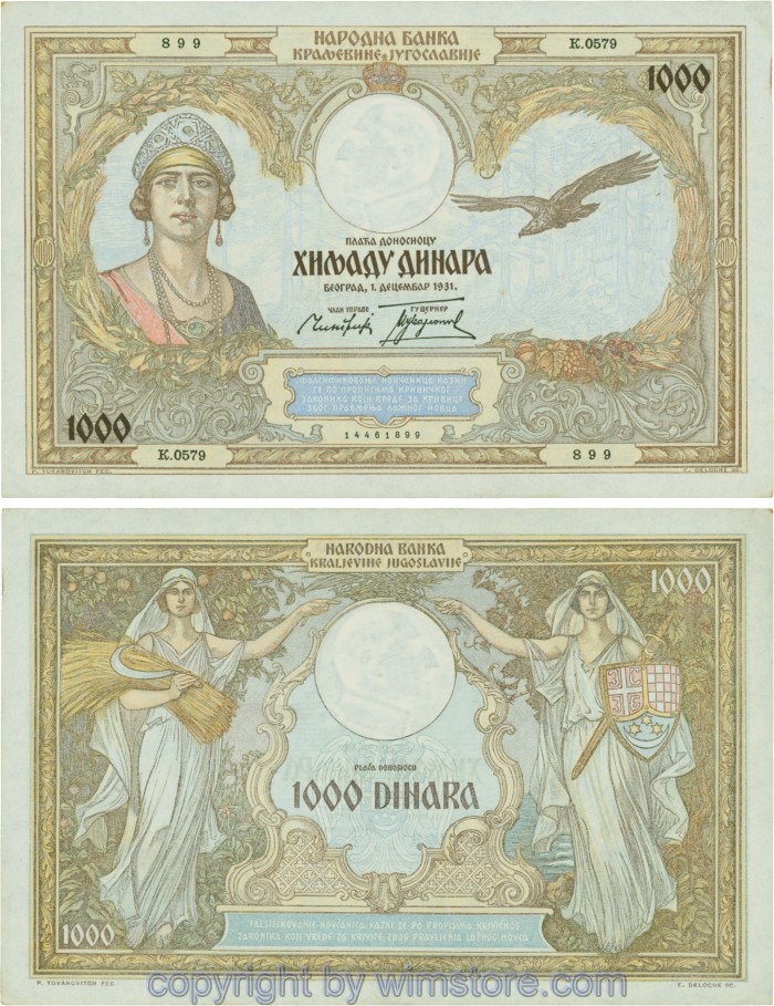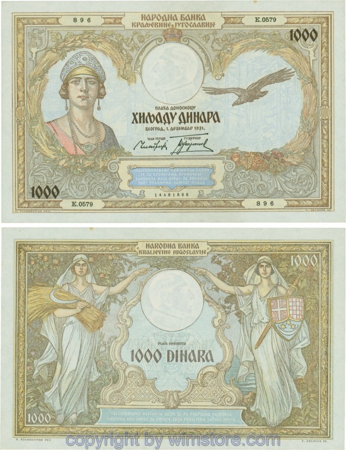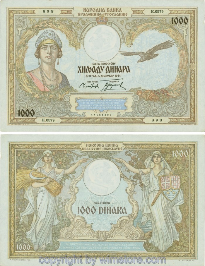 Jugoslawien, P029, 1000 Dinara 1.12.1931, Serie К; 2 ggf. Auswahl möglich! Originalfoto/s.