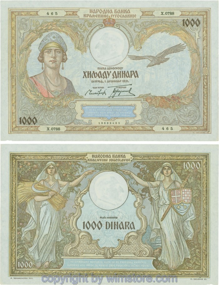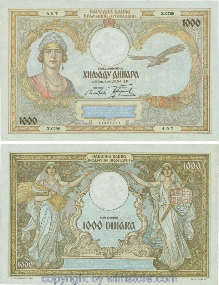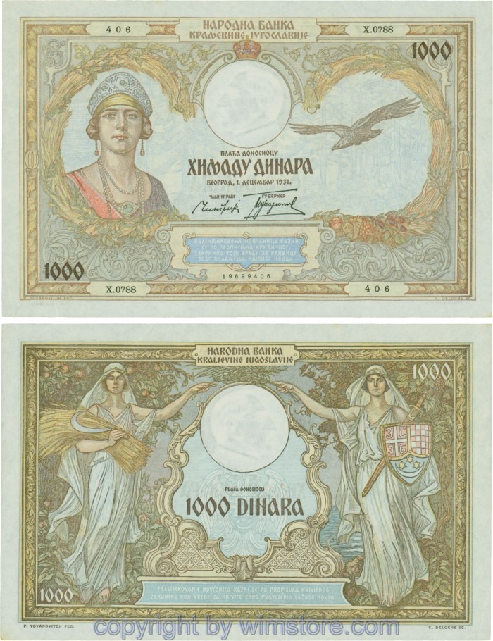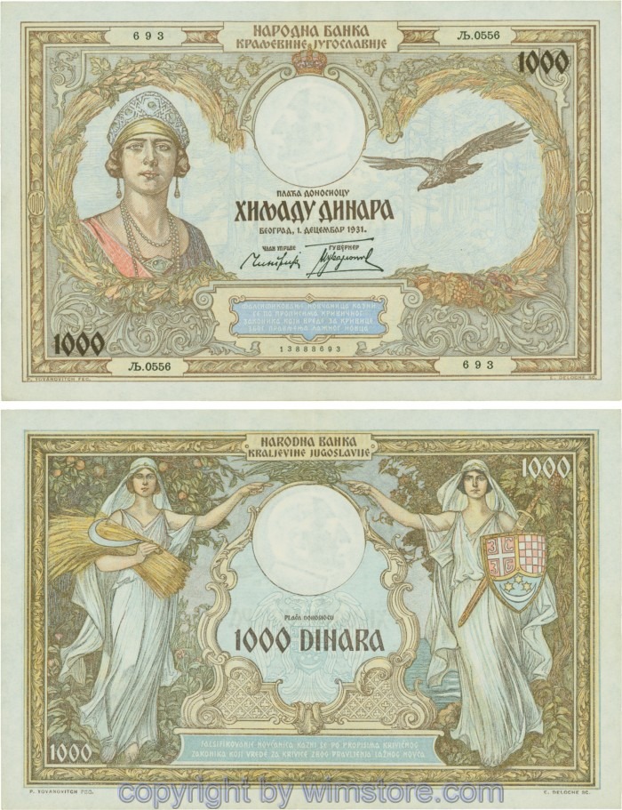Jugoslawien, P029, 1000 Dinara 1.12.1931, Serie Ж (Ž); 4 ggf. Auswahl möglich! Originalfoto/s.