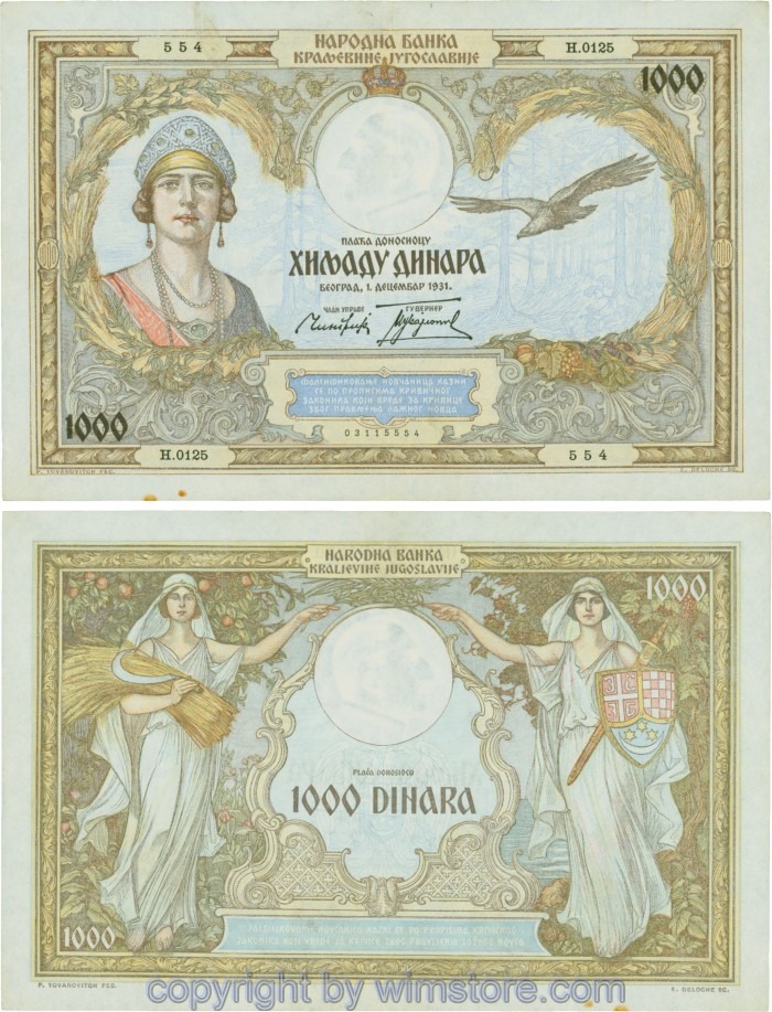 Jugoslawien, P029, 1000 Dinara 1.12.1931, Serie Н (N); 4 ggf. Auswahl möglich! Originalfoto/s.