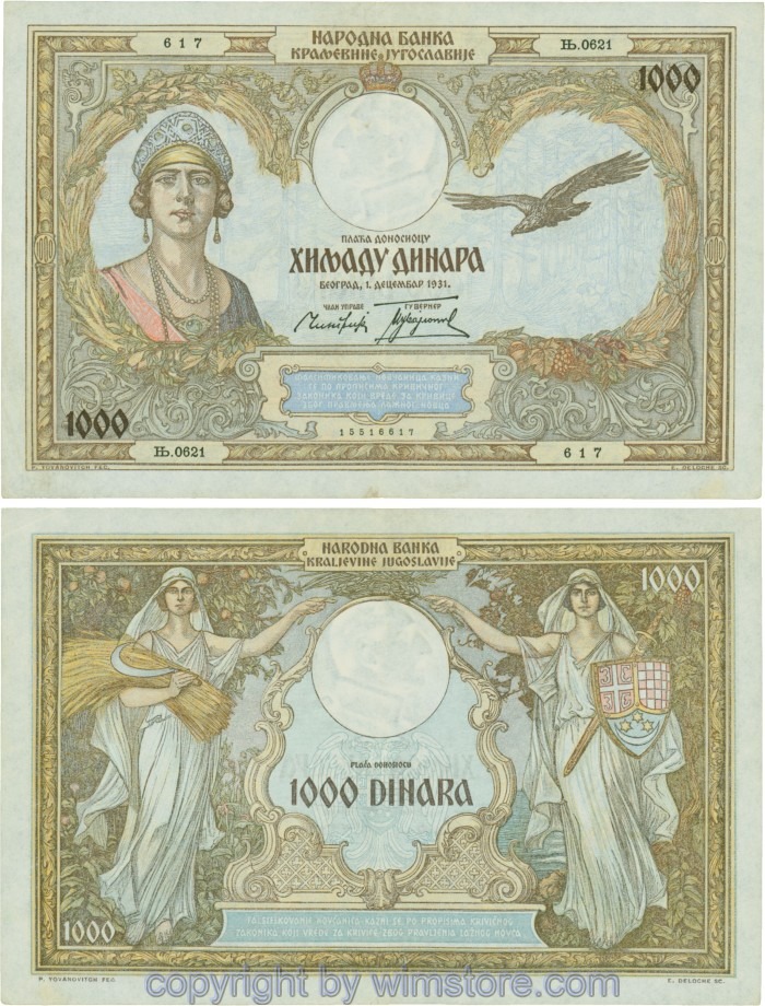 Kaufen Sie eines von Jugoslawien, P029, 1000 Dinara 1.12.1931, Serie Ђ (Dj); 3 für 9,90 €