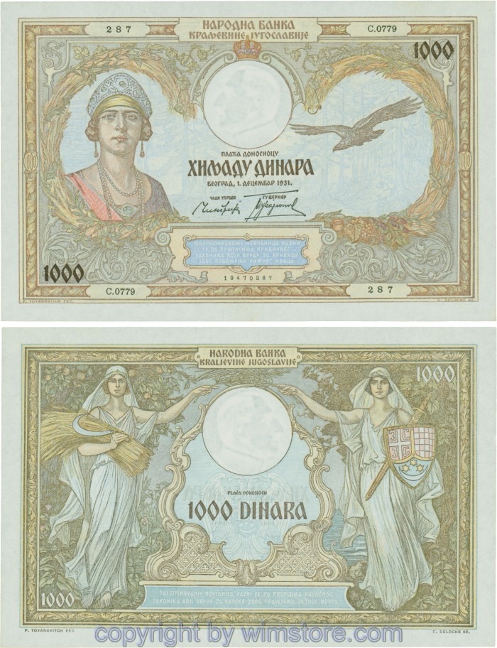 Kaufen Sie eines von Jugoslawien, P029, 1000 Dinara 1.12.1931, Serie С (SS); 2 für 14,00 €