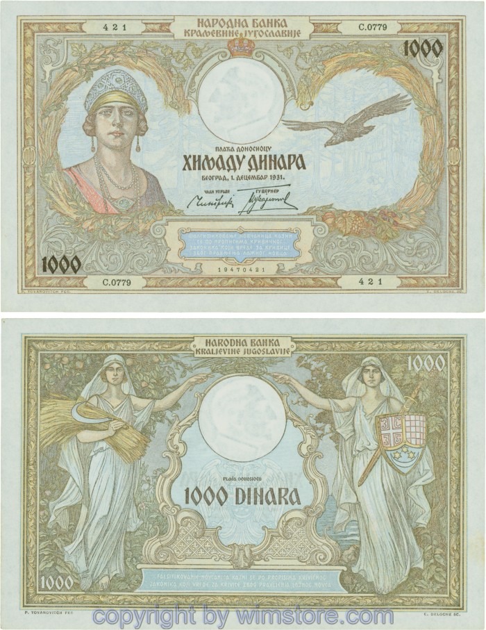 Jugoslawien, P029, 1000 Dinara 1.12.1931, Serie С (SS); 2 ggf. Auswahl möglich! Originalfoto/s.