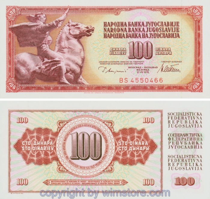 Jugoslawien, P090a, 100 Dinara 12.8.1978