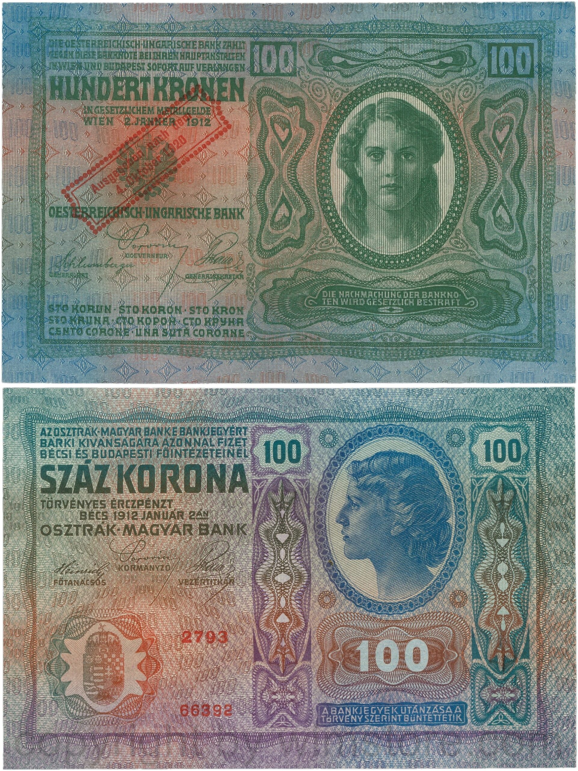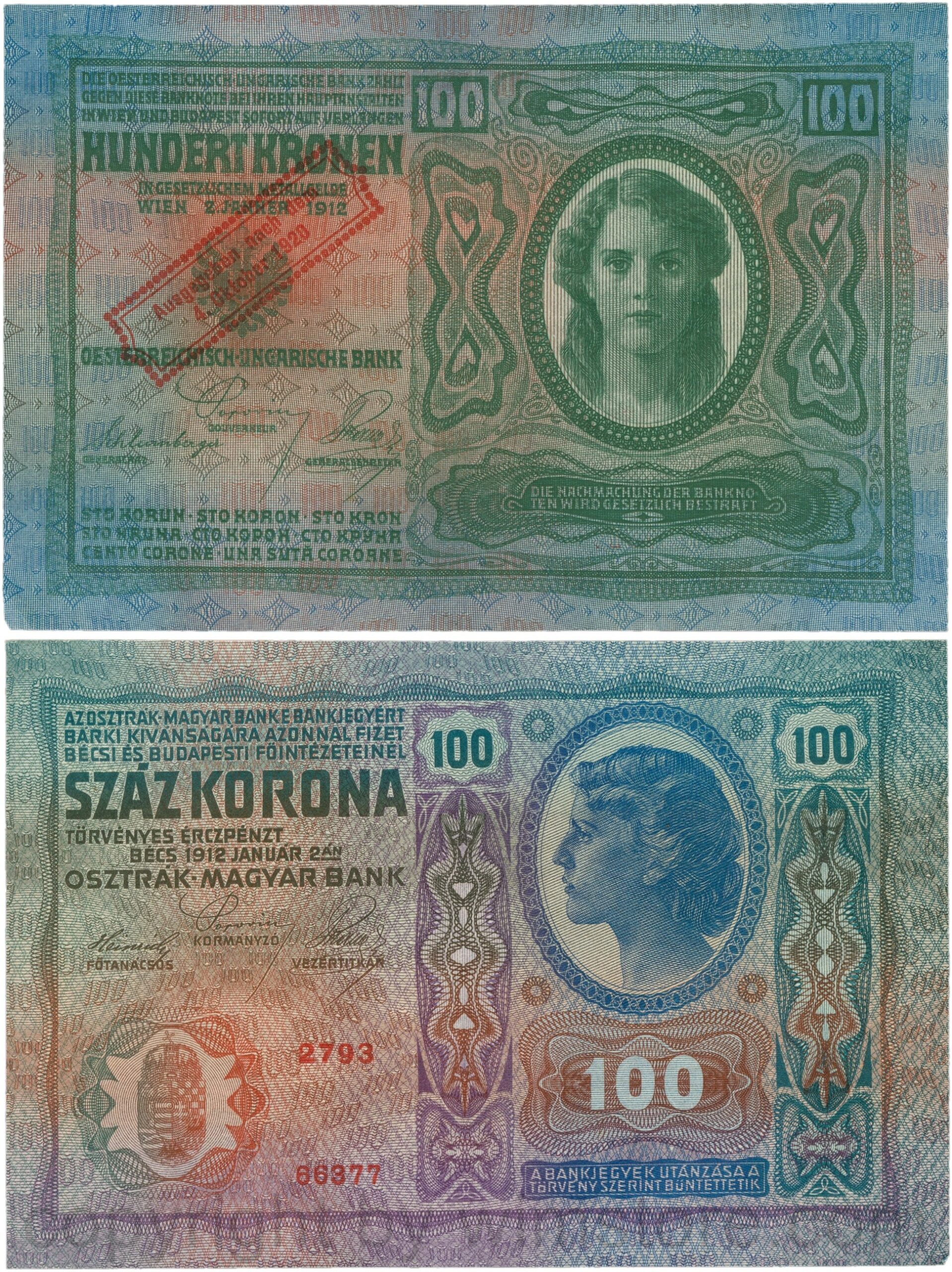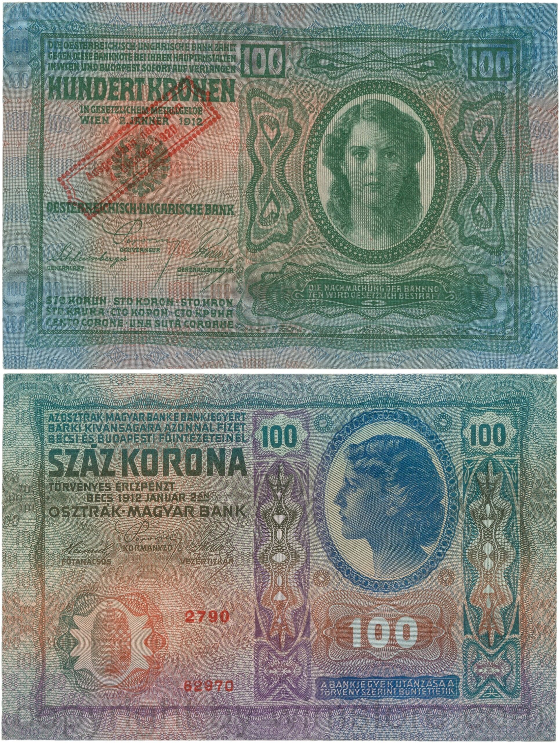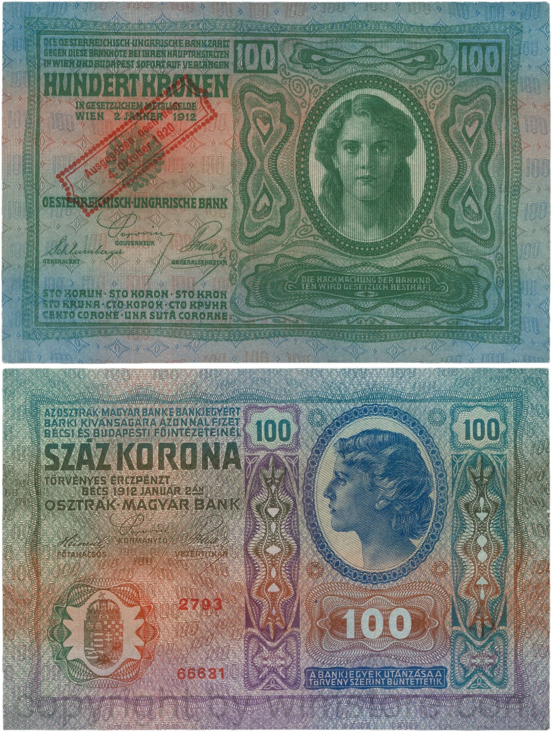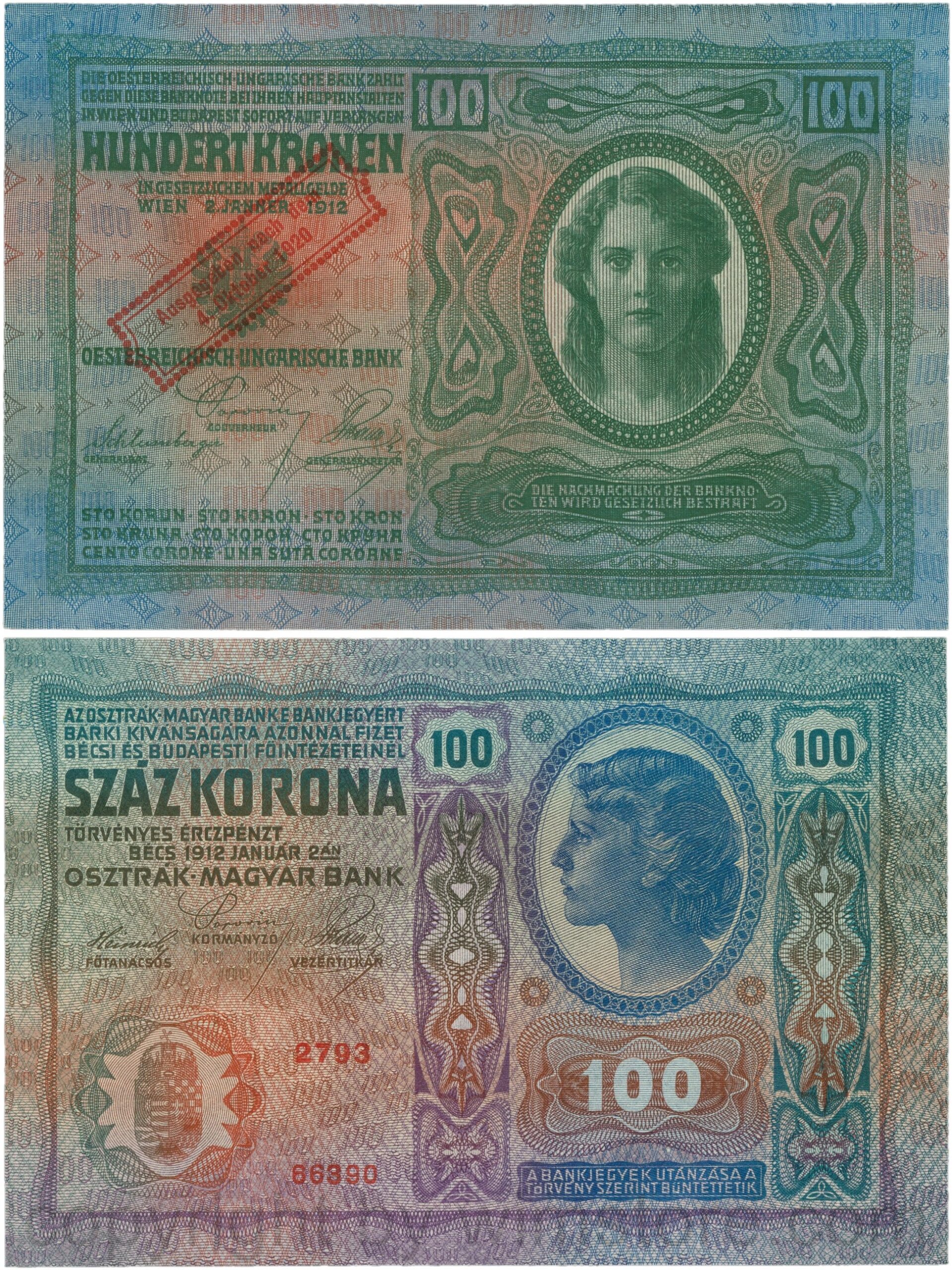 Österreich, 1. Republik, P047, 100 Kronen 1912, Ausgegeben nach dem 4. Oktober 1920; 2 Originalfoto.