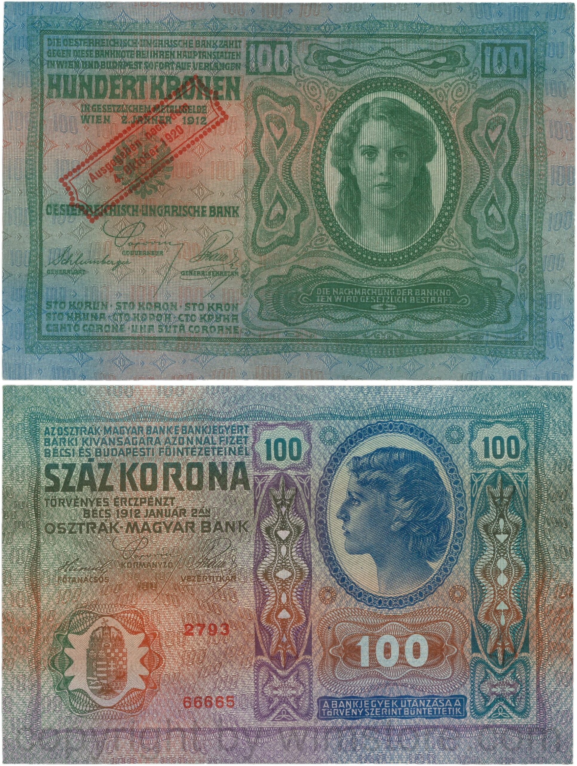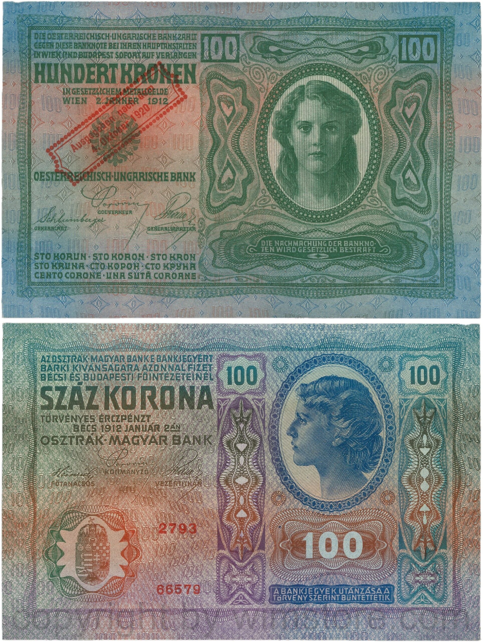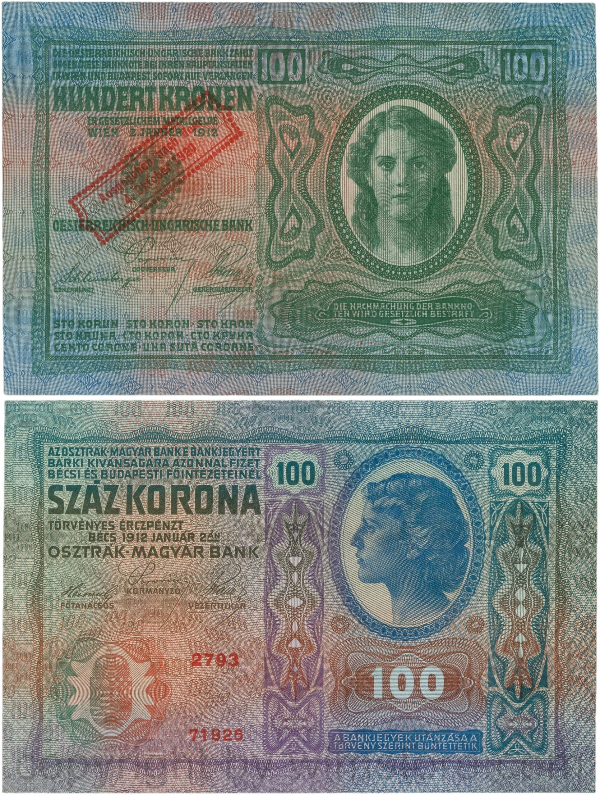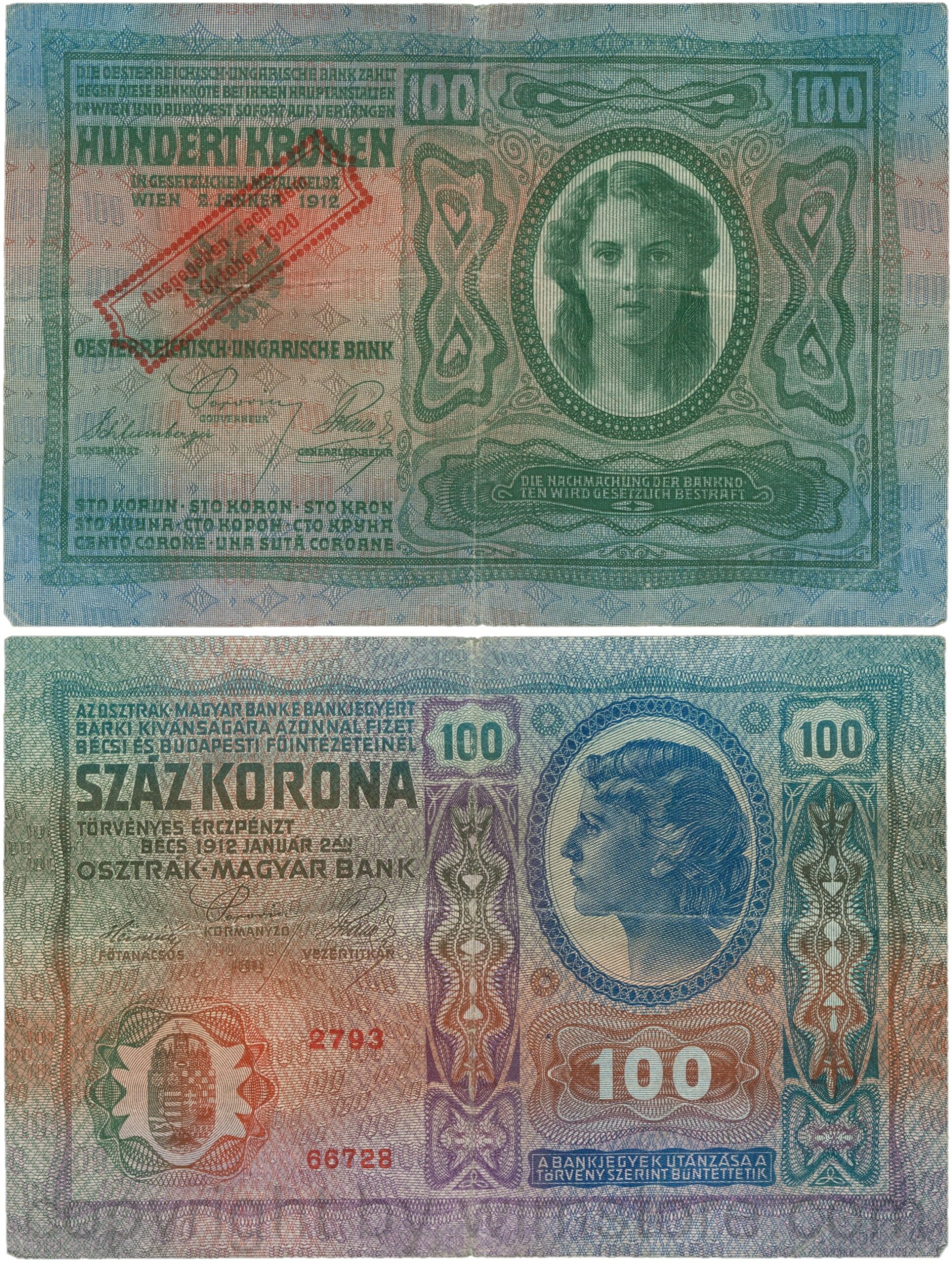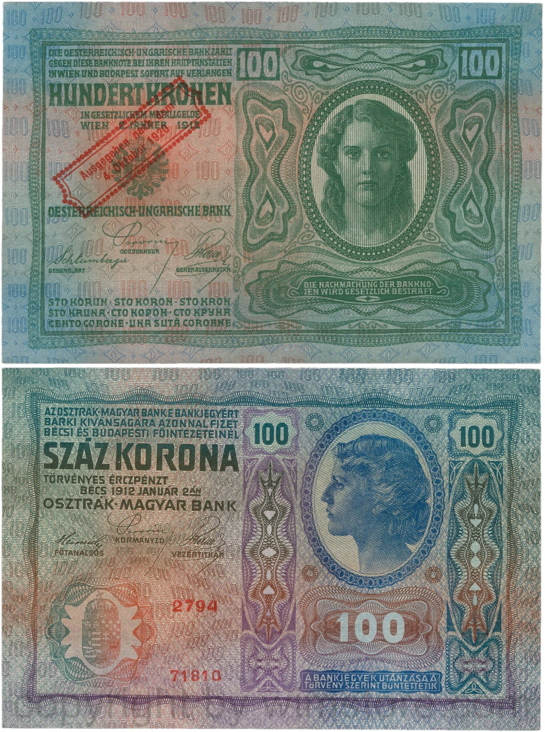 Österreich, 1. Republik, P047, 100 Kronen 1912, Ausgegeben nach dem 4. Oktober 1920; 2 Originalfoto.