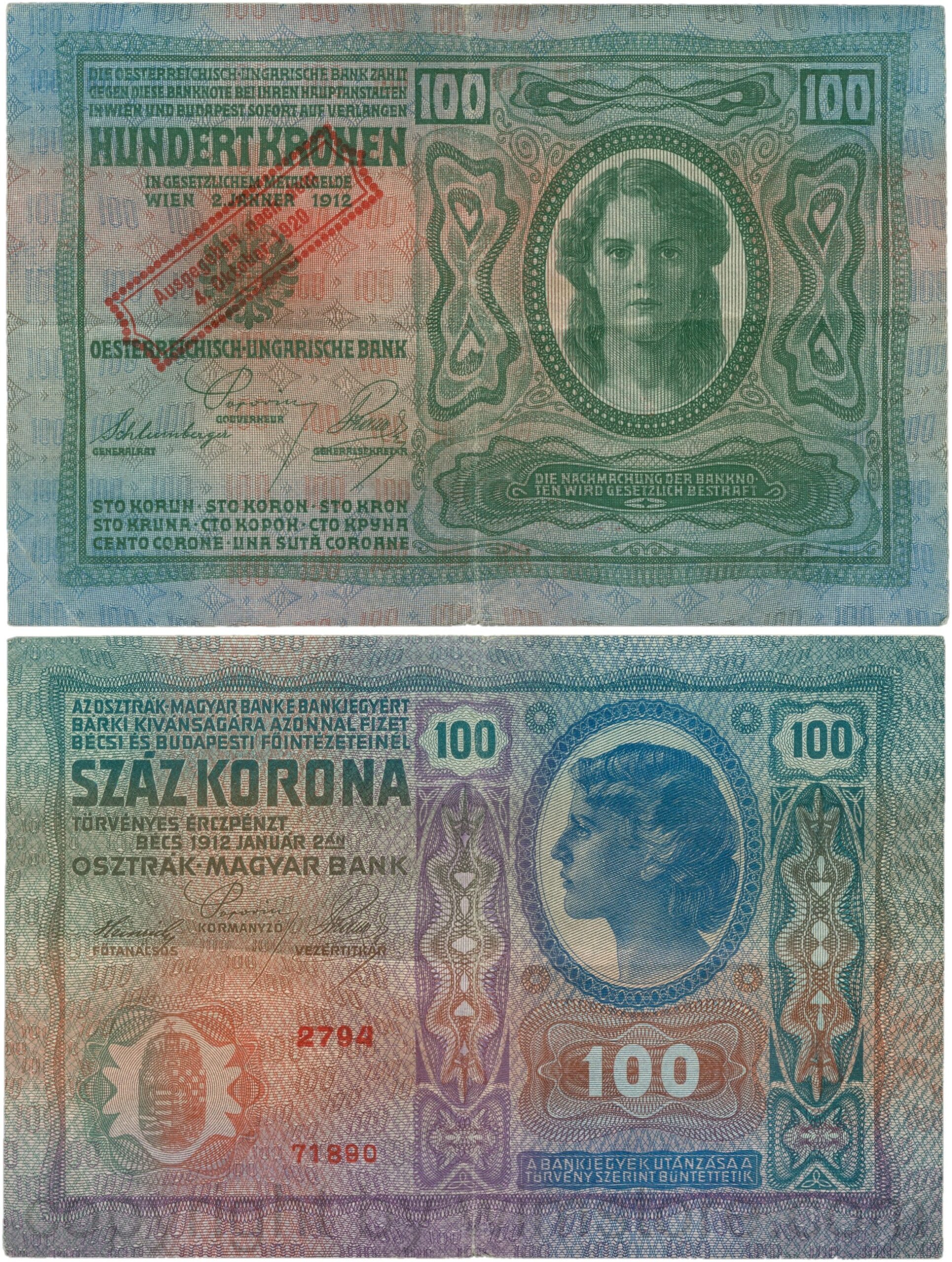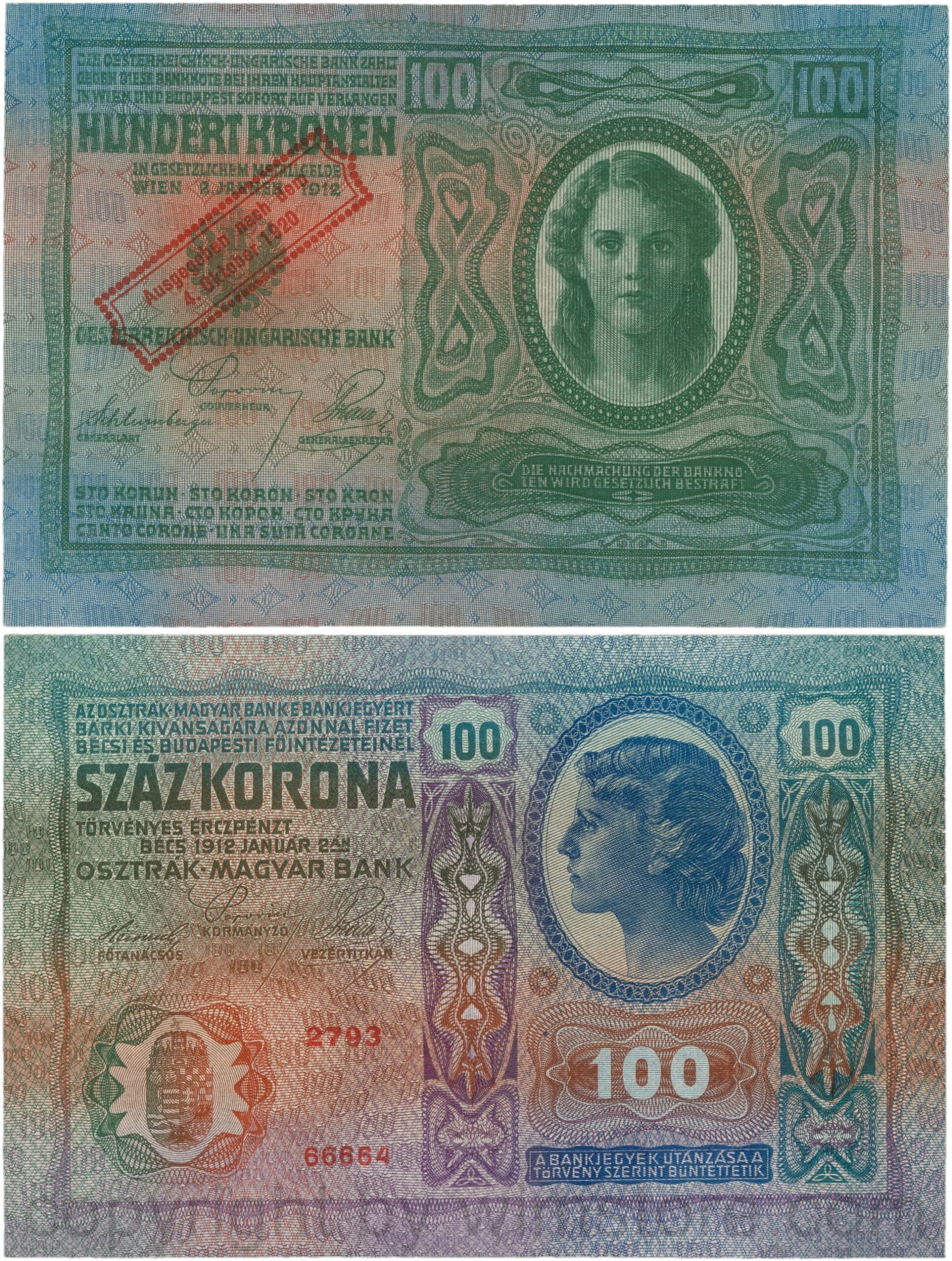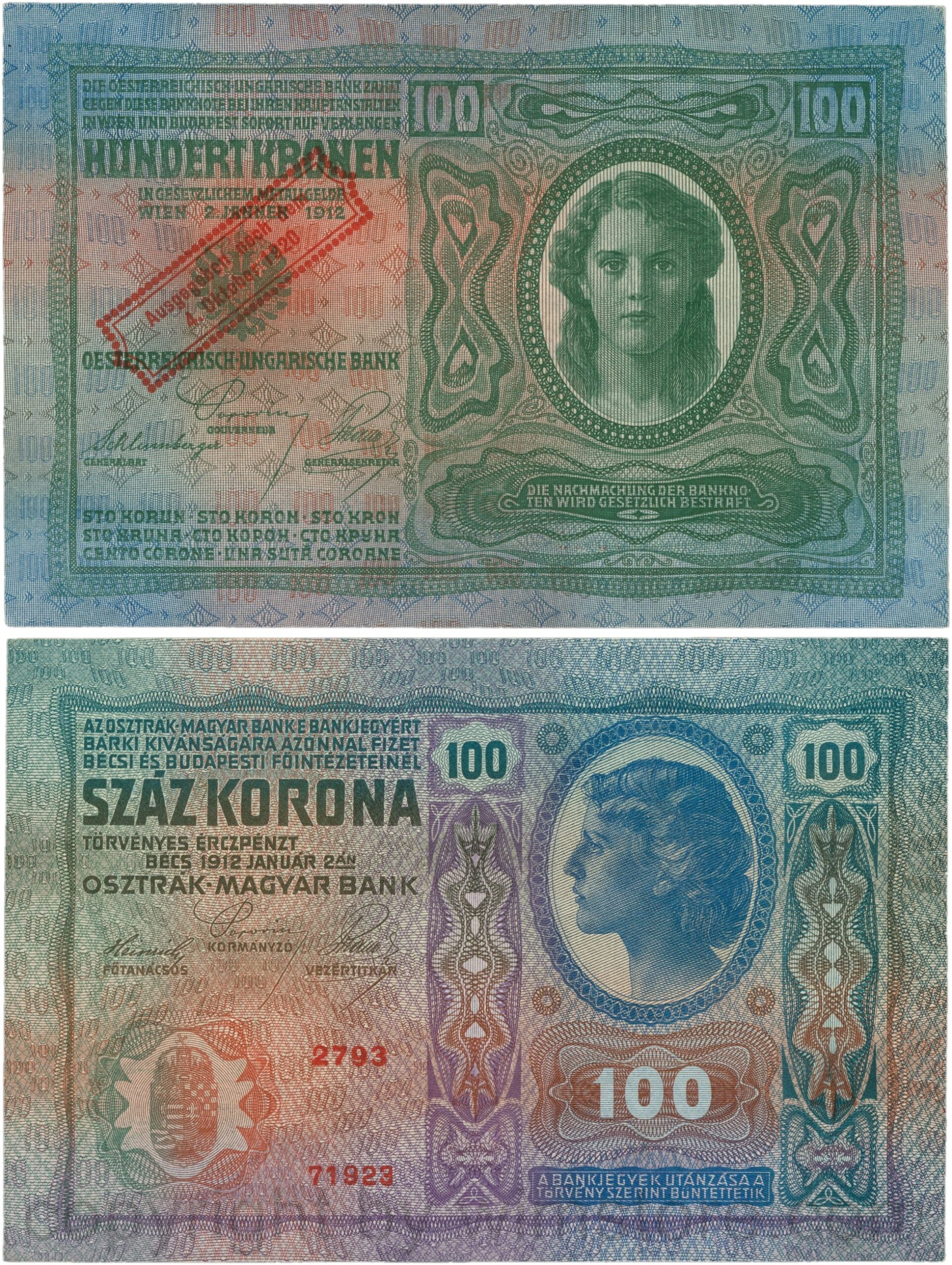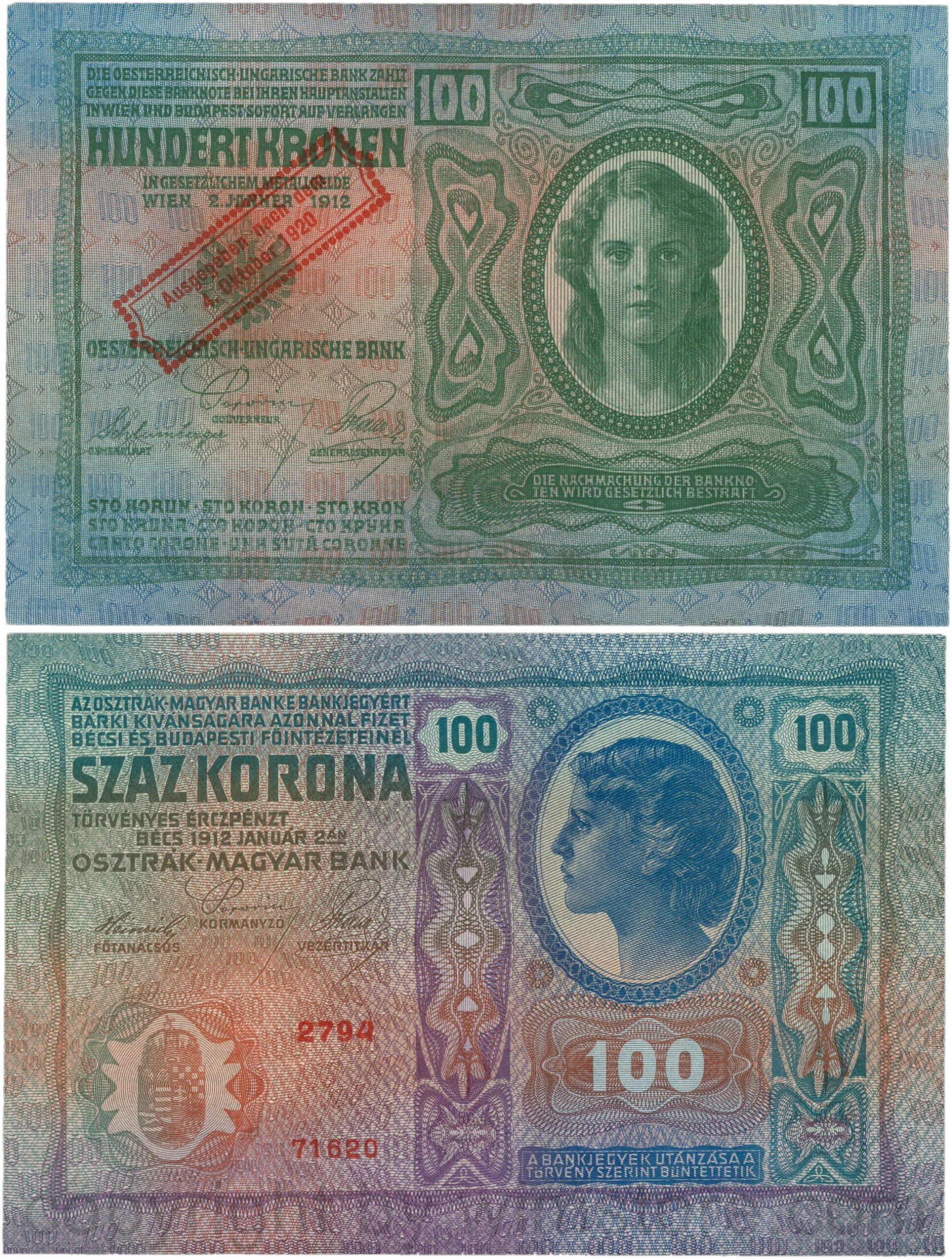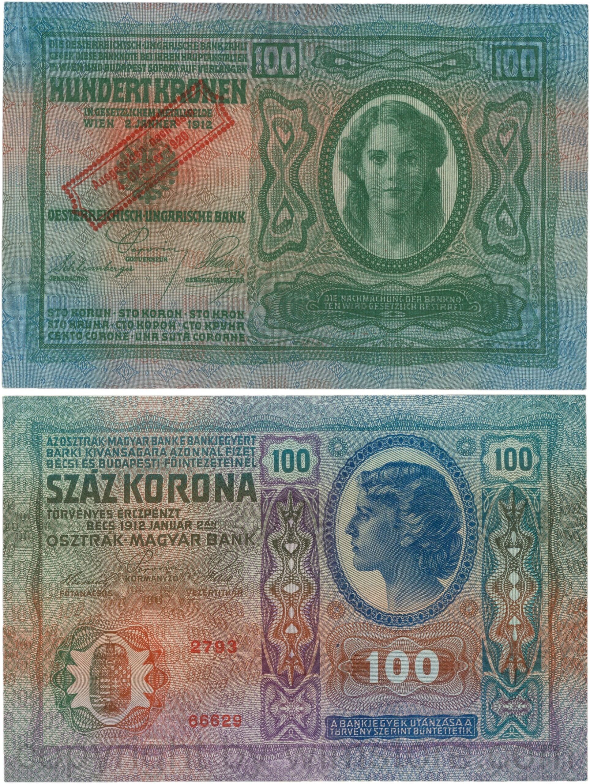 Österreich, 1. Republik, P047, 100 Kronen 1912, Ausgegeben nach dem 4. Oktober 1920; 2 Originalfoto.