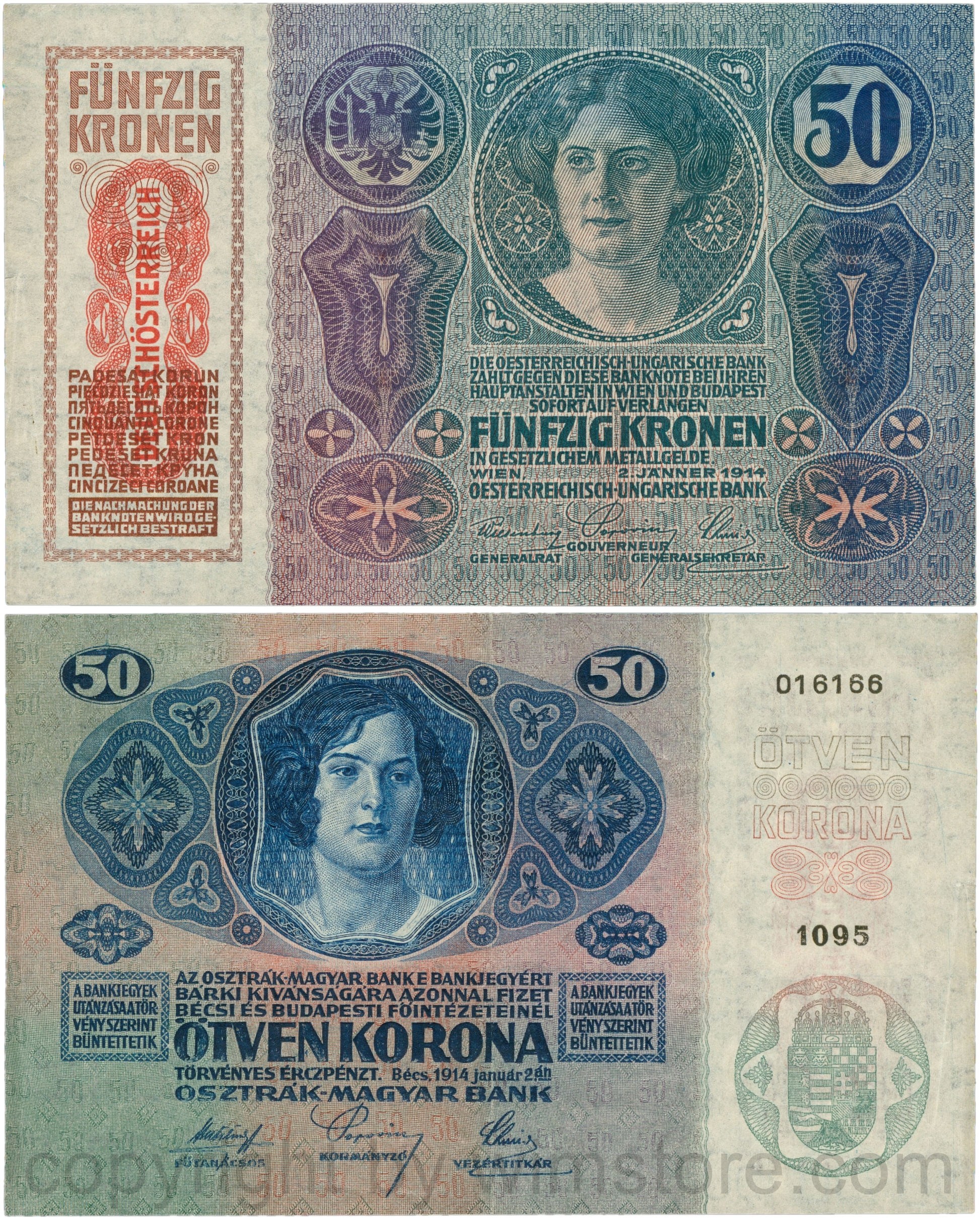 Österreich, 1. Republik, P054a, 50 Kronen 2.1.1914, Aufdruck „DEUTSCHÖSTERREICH“ (1919)