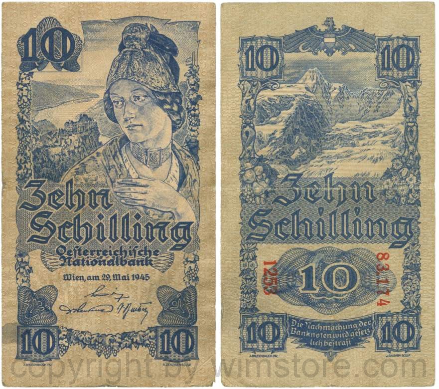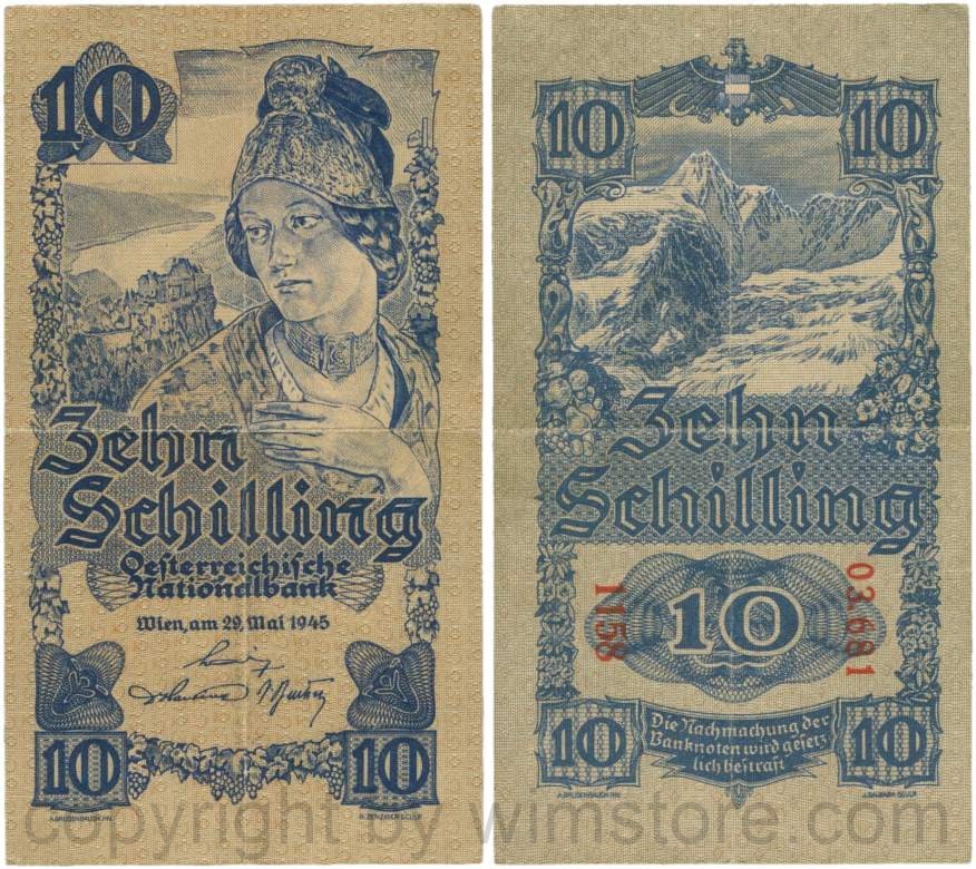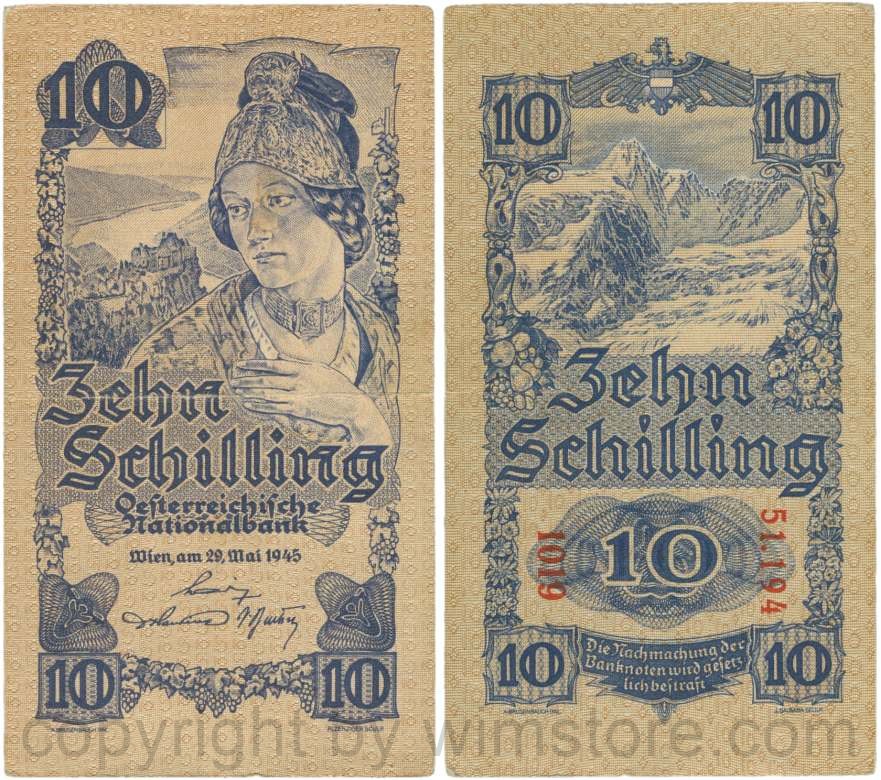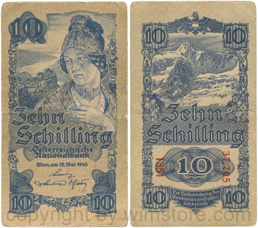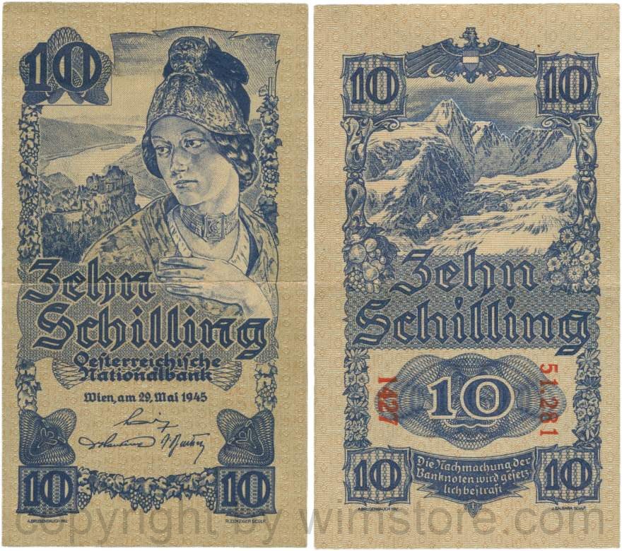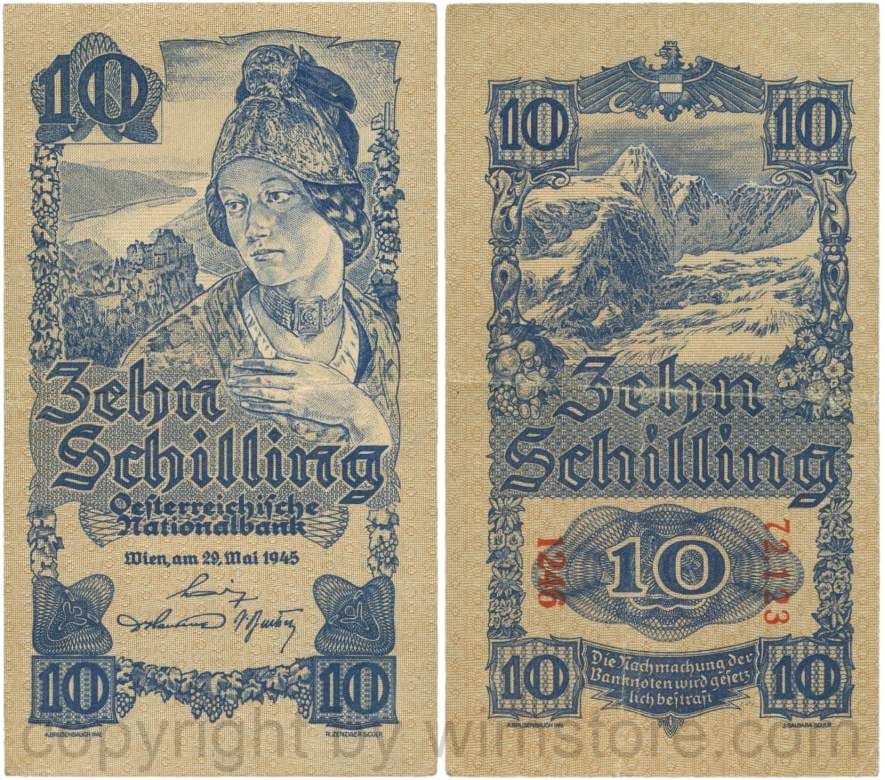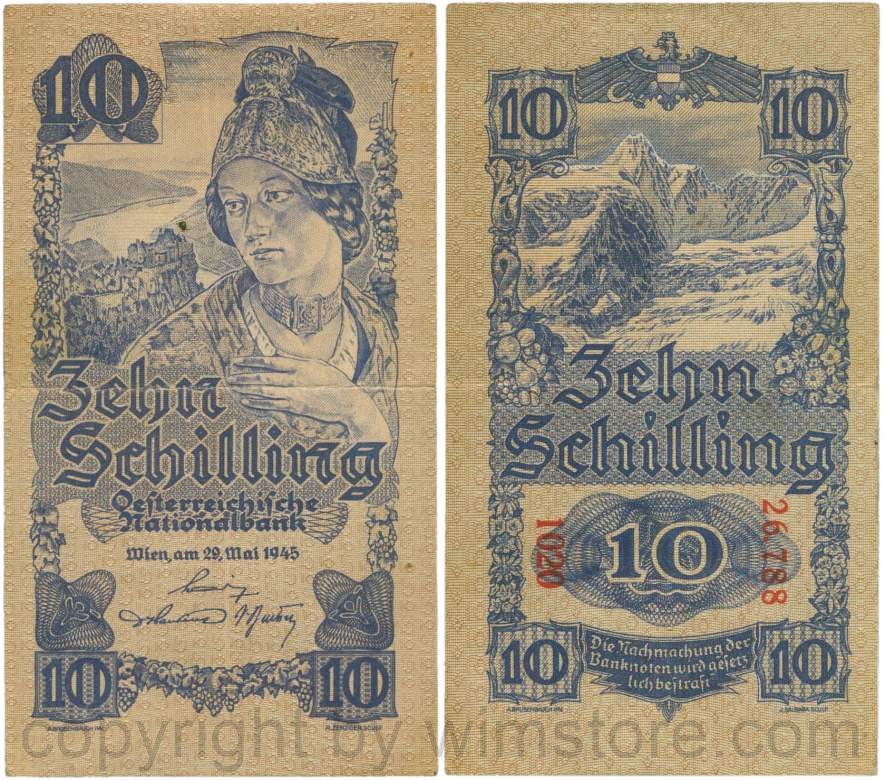 Österreich, 2. Republik, P114a, 10 Schilling 1945, KN 5-stellig