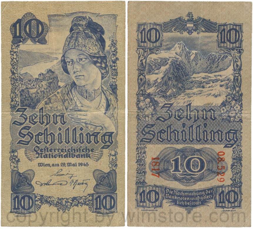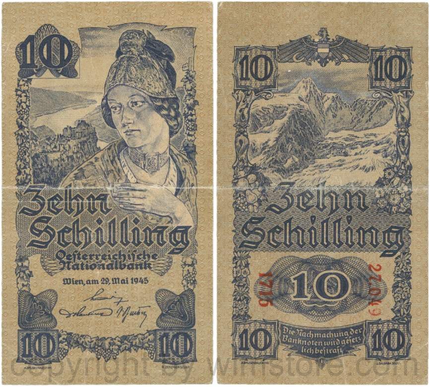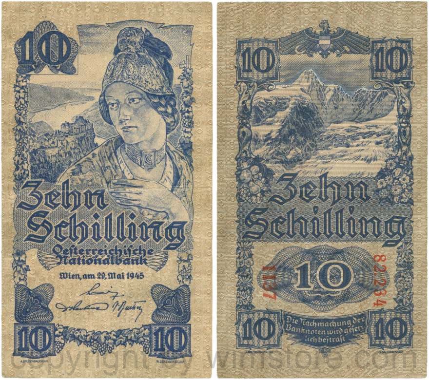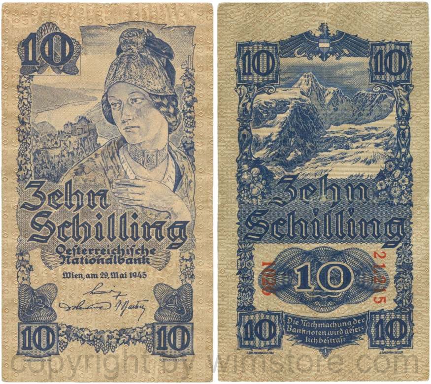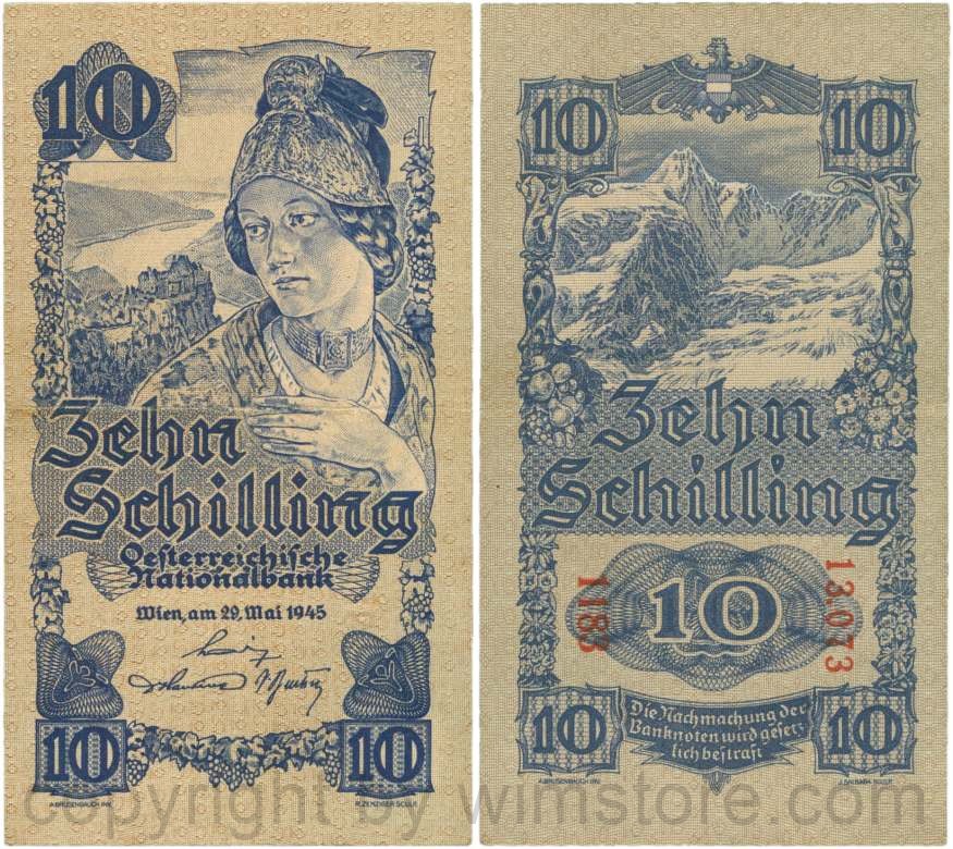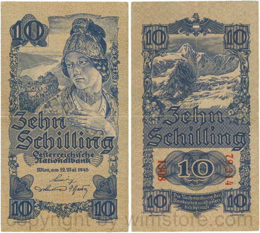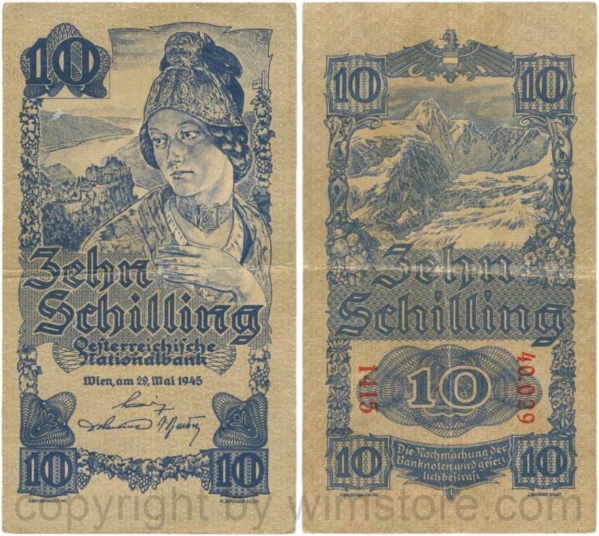 Österreich, 2. Republik, P114a, 10 Schilling 1945, KN 5-stellig