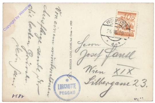 Foto: Fischer, Graz. Stempel: Lurgrotte-Peggau-Semriach. Ungelaufen, I-.