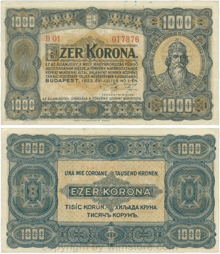 Ungarn, P 075a, 1000 Korona, 01.07.1923, mit Namen der Druckfirma